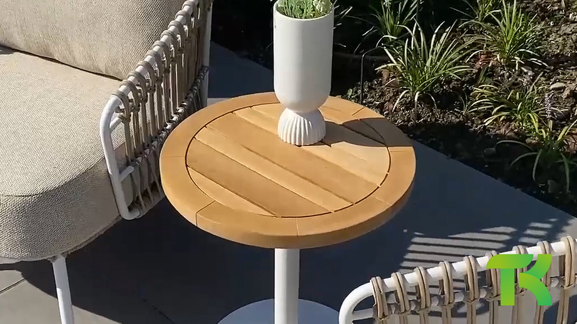 Discover the beauty and versatility of the 4 Seasons Outdoor Volta round coffee table with its beautiful teak tabletop and stainless steel frame. The Volta table series consists of 3 sizes and 3 colors Anthracite, White, Latte. This table adds a touch of natural elegance to your outdoor space and is designed with attention to detail.
