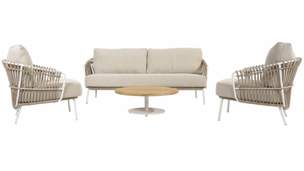 Experience ultimate comfort and modern elegance with the 4 Seasons Outdoor Dalias lounge set. This set includes cushions and features refined taupe braiding and a sleek white stainless steel frame. Here are some features that make this lounge set an absolute favorite: 5-year warranty and 10 years on braiding, hularo wicker: high-quality braiding, extremely comfortable, modern look, eye-catching design, and weather-resistant. Also available in dining and low dining, see them here: 4SO Dalias Dining and 4SO Dalias Low Diningset.