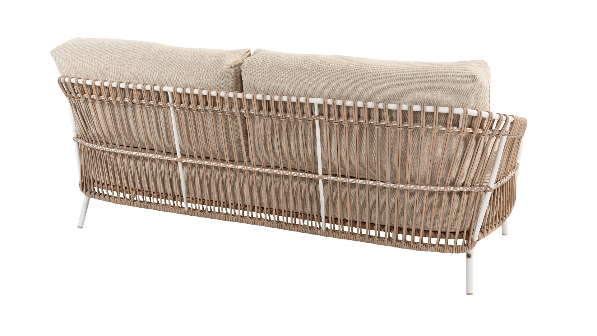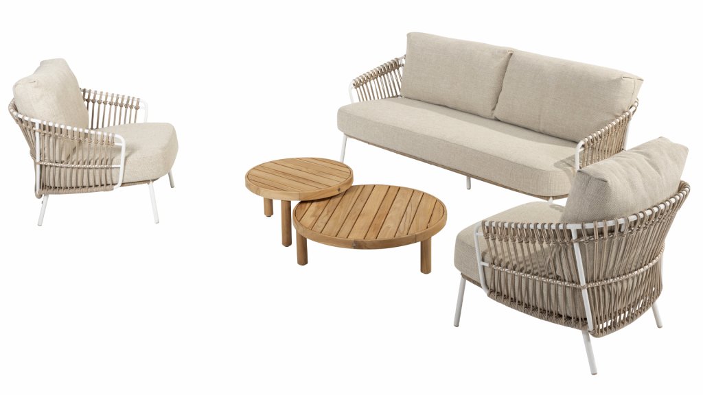 White dahlias on the beach Close your eyes and imagine yourself in Ibiza. The summery atmosphere that the Dalias series exudes through its white frame and taupe braided material immediately gives your garden a sunny boost. If you love summer, you'll love Dalias.