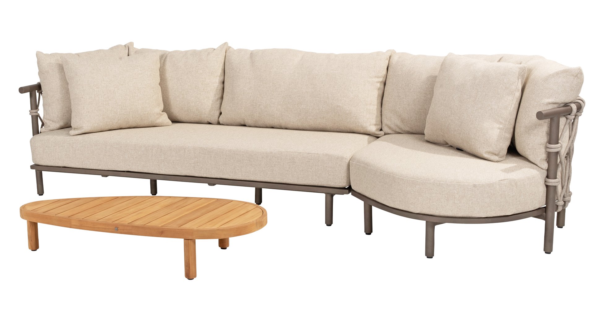 Experience ultimate comfort and stylish elegance with the Ezra lounge from 4 Seasons Outdoor. This beautiful lounge set, executed in an elegant Terre color, features a stunning design that perfectly matches contemporary gardens. The fully aluminum frame is designed with sublime curves, while the thick lounge cushions provide a delightful contrast and optimal comfort. Combined with the thick rope, it's a gorgeous set!