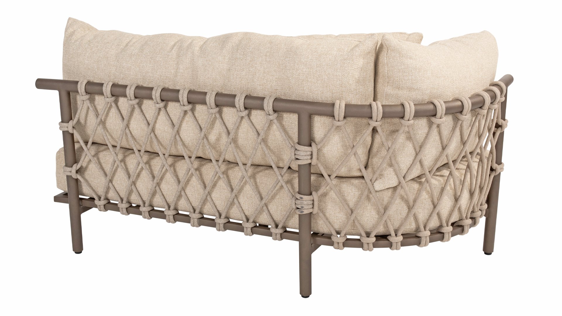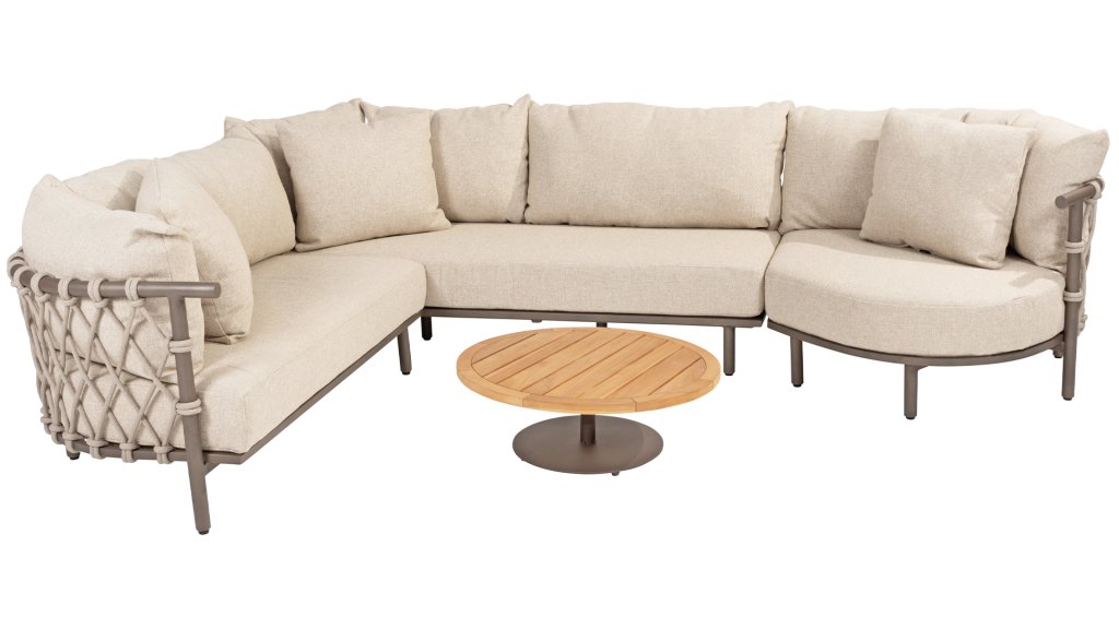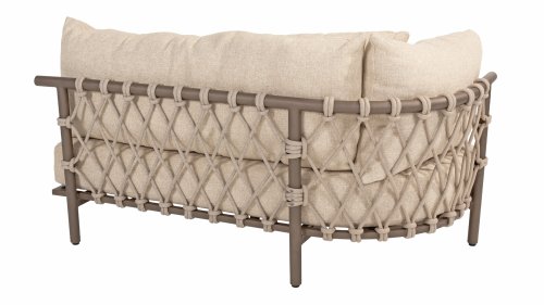Experience ultimate comfort and stylish elegance with the Ezra lounge from 4 Seasons Outdoor. This beautiful lounge set, finished in an elegant Terre color, features a stunning design that perfectly complements contemporary gardens. The fully aluminum frame is designed with sublime curves, while the thick lounge cushions provide a delightful contrast and optimal comfort. Combined with the thick Rope, it's a beautiful set!