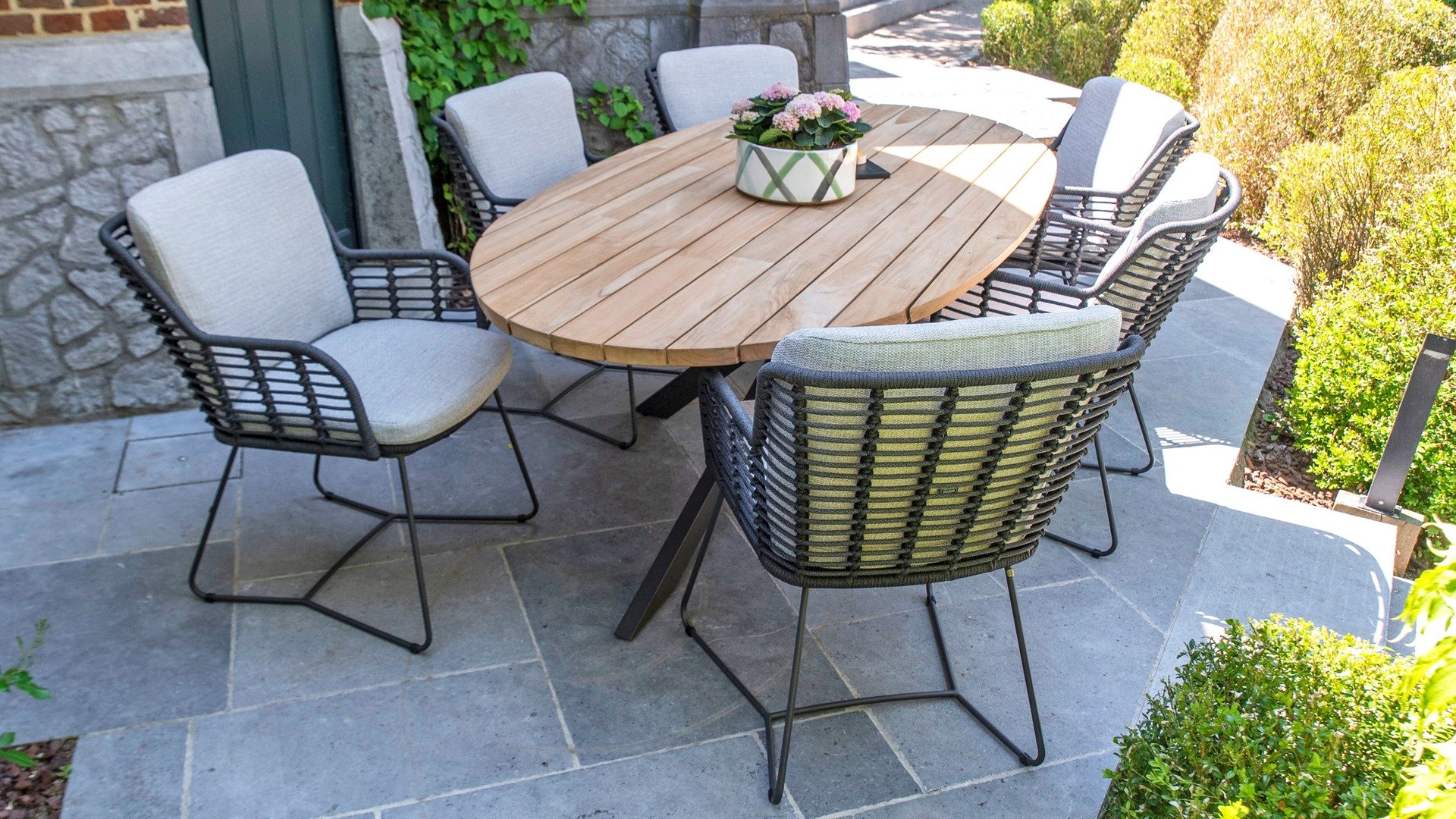 The Taste by 4Seasons Prado Ellips can be called a work of art. Just look at how ingeniously the legs are put together. The thick teak wood top has an inclined edge and gives the table an airy touch. Can be combined with our entire collection of garden chairs.
