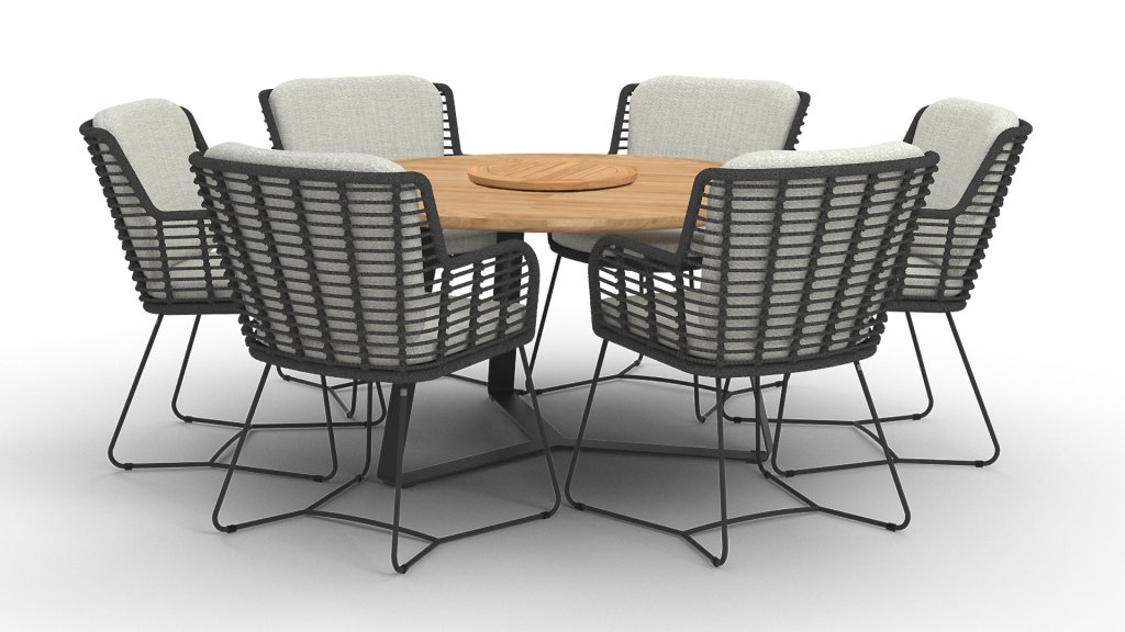 Made from the best materials, crafted with passion. This beautiful 4Seasons Fabrice dining series not only has flair but also excellent seating comfort. The chair is also available in the following colors: Anthracite, Latte and Terre. The materials used are synthetic rope, olefin & aluminum. Synthetic rope has a core that ensures color fastness and makes it mold-resistant. Olefin also makes the cushions color fast and water-resistant, and the fabric feels comfortable. The frame of the Fabrice is powder-coated aluminum to complete the sleek design! Also available in lounge: 4SO Fabrice Corner Lounge Set & 4SO Fabrice Lounge Set.