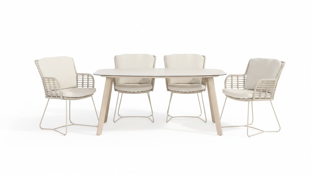This material has been used for decades as flooring, finishing in bathrooms, and luxury (outdoor) swimming pools. It's no wonder this durable material is known for its extreme hardness. The beautiful appearance of the material makes ceramic highly distinctive and sought-after. Ceramic is a mixture of natural materials comparable to a type of clay. It is fired at very high temperatures, creating a light yet very strong material that is extremely scratch-resistant and can also withstand extreme temperatures. As mentioned, ceramic has several unique properties that offer many advantages, especially for outdoor use. Ceramic is extremely hard, resistant to shocks, impacts, and scratches. Heat and cold are no problem for ceramic, so garden tables can remain outdoors year-round. Ceramic is colorfast, so even after years of outdoor use, your 4 Seasons Outdoor garden table will still look beautiful. Ceramic is a hygienic material due to its high density. Food stains are easily cleaned with a cloth. Household cleaning products also leave no residue.