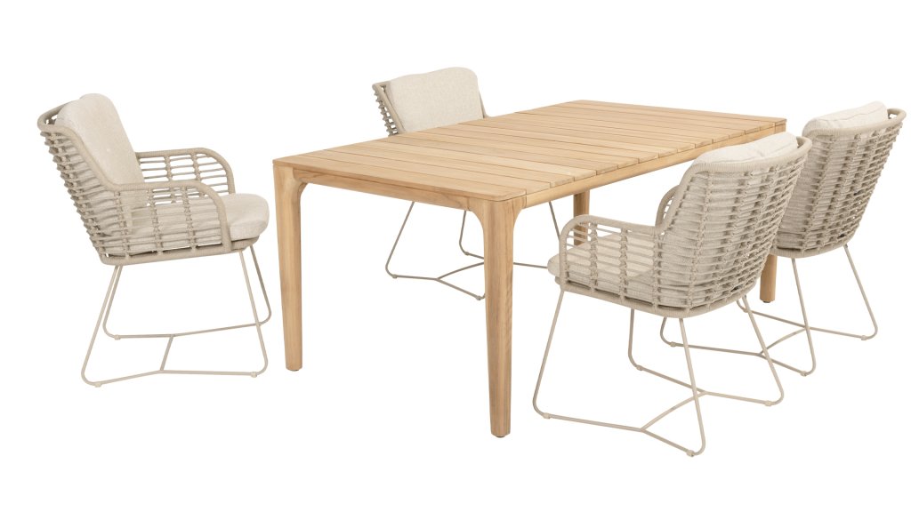 Made from the best materials, crafted with passion. This beautiful 4Seasons Fabrice dining series not only has flair but also excellent seating comfort. The chair is also available in the following colors: Anthracite, Latte and Terre. The materials used are synthetic rope, olefin & aluminum. Synthetic rope has a core that ensures color fastness and makes it mold-resistant. Olefin also makes the cushions color fast and water-resistant, and the fabric feels comfortable. The frame of the Fabrice is powder-coated aluminum to complete the sleek design! Also available in lounge: 4SO Fabrice Corner Lounge Set & 4SO Fabrice Lounge Set.