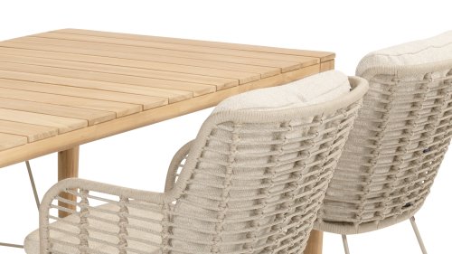 This beautiful material is perfect for outdoor use, because 4SO Rope is not just an shoelace. Our round wires have a synthetic core. This polypropylene base ensures minimal stretching of the rope and also does not absorb moisture. The covering is made of an acrylic fabric, similar to the weather-resistant fabric of our garden cushions. This covering feels soft but is highly water-repellent, UV-resistant, and colorfast. The flat rope variants have the same mix of weather-resistant materials, but the polypropylene material is interwoven with the acrylic fabric. This technique gives the flat rope the same properties but a completely different look. The stretch is minimal, and 4 Seasons Outdoor garden furniture with Rope is suitable for people weighing up to 110 kg. It's therefore an exceptionally strong material, but it's important to be careful with sharp objects. Our Rope is weather-resistant, but a sharp object can seriously damage your garden furniture. We offer exclusive designs using hand-woven Rope patterns and techniques.