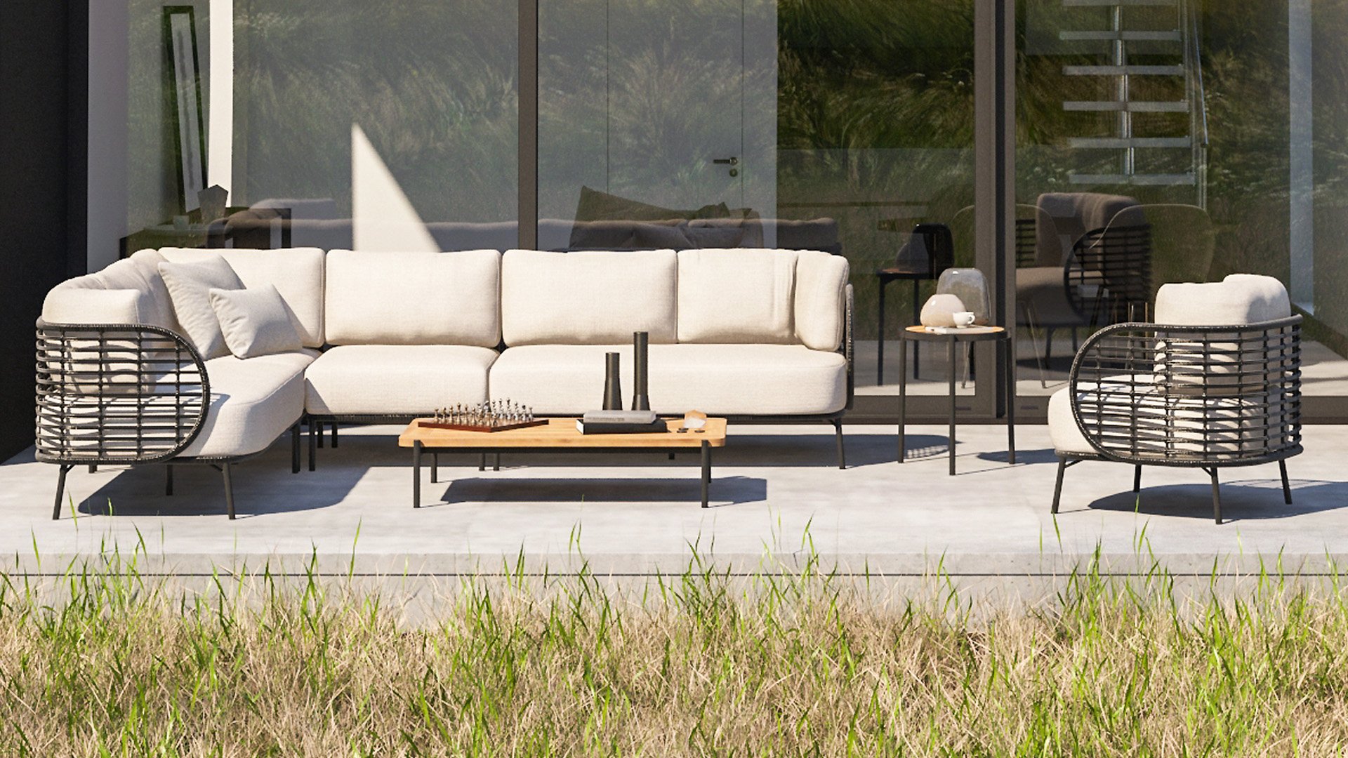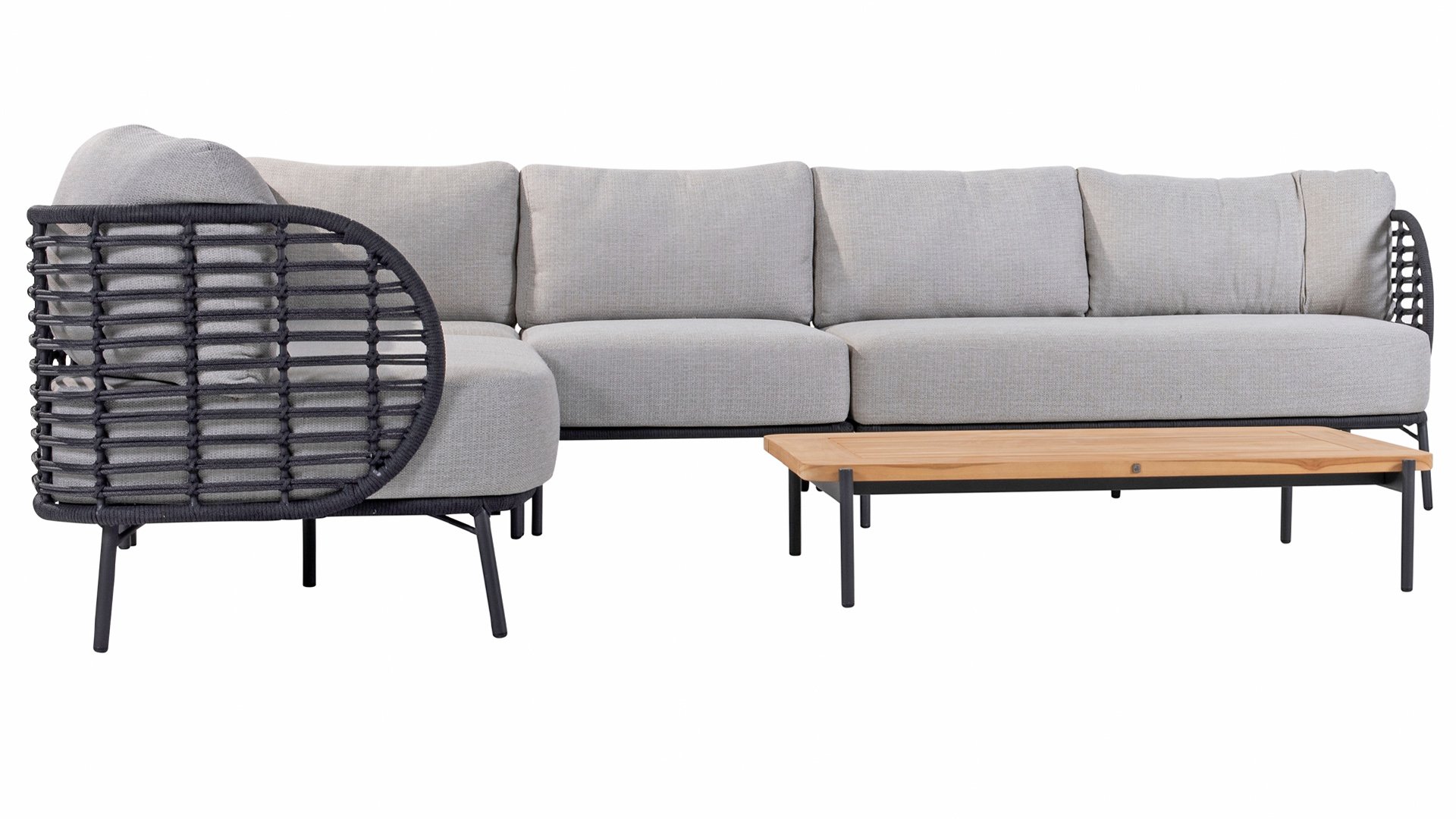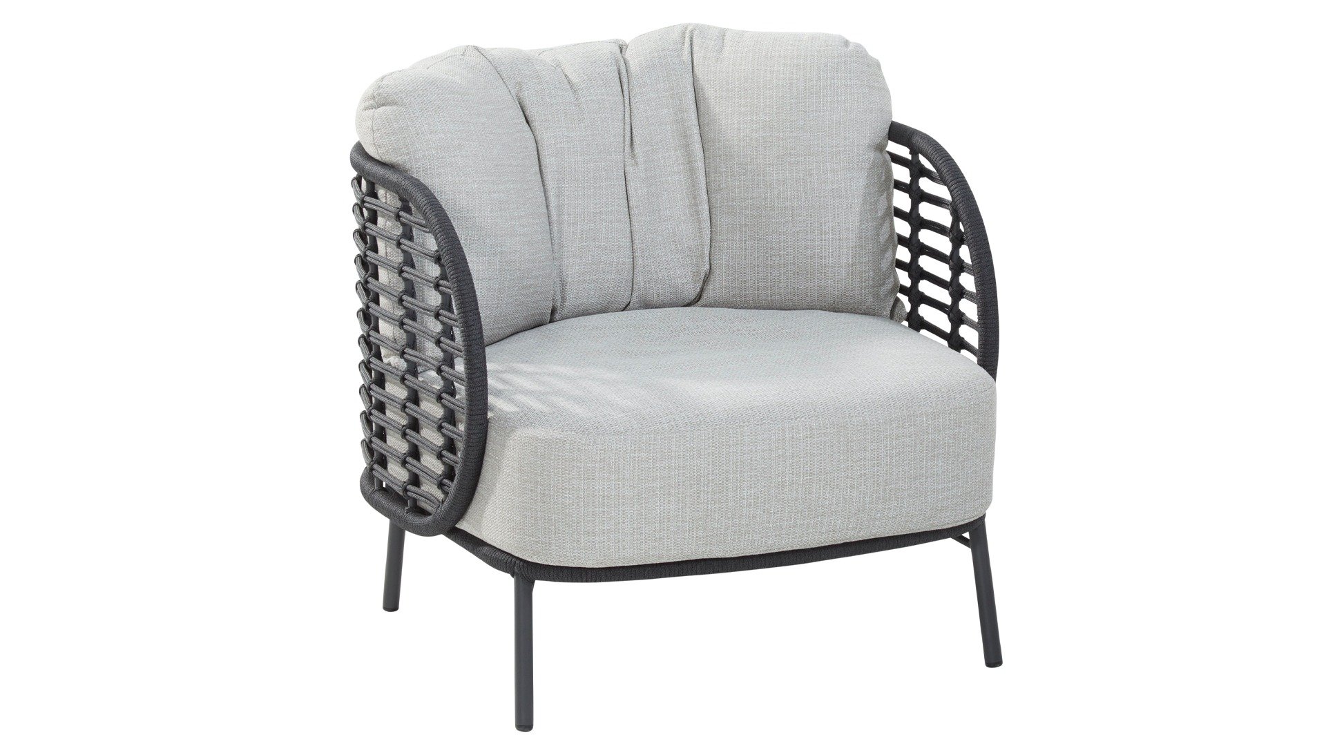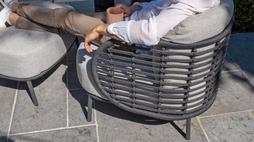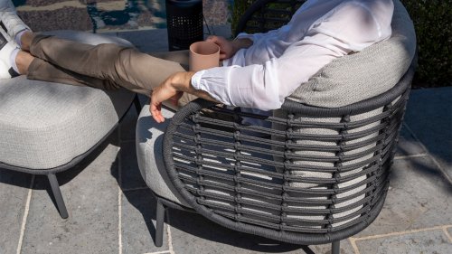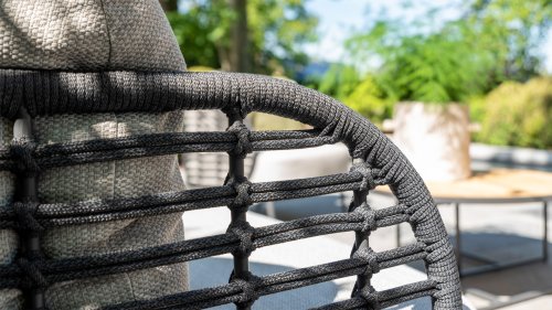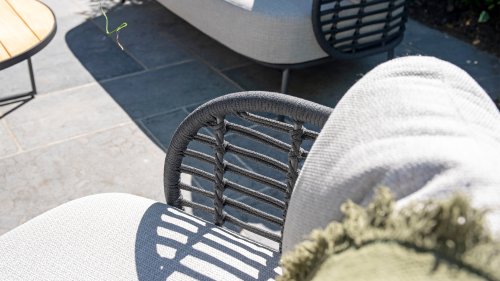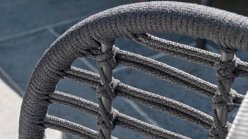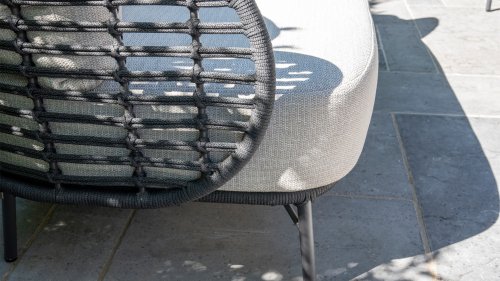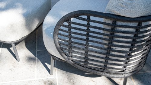 The frame of the 4SO Fabrice Lounge Set seamlessly blends together and is finished with tightly woven Rope. The back and seat are woven with this strong Rope, providing a sturdy but comfortable seating. The frame forms a playful and minimalist interplay of flowing lines that come together and then part ways, a feast for the eyes!