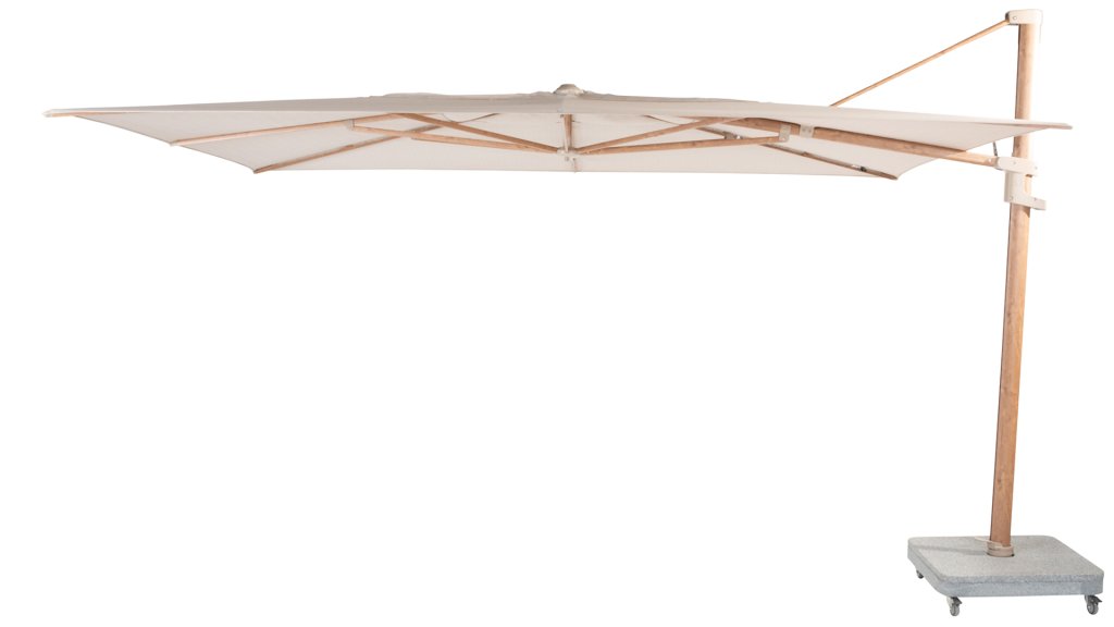 The 4Seasons hanging cantilever umbrella is now a real classic. This cantilever umbrella has proven its quality over time. The umbrella can be tilted backward to catch the low sun. It is also rotatable on the base. See the video for more information. Standard 5-year warranty.