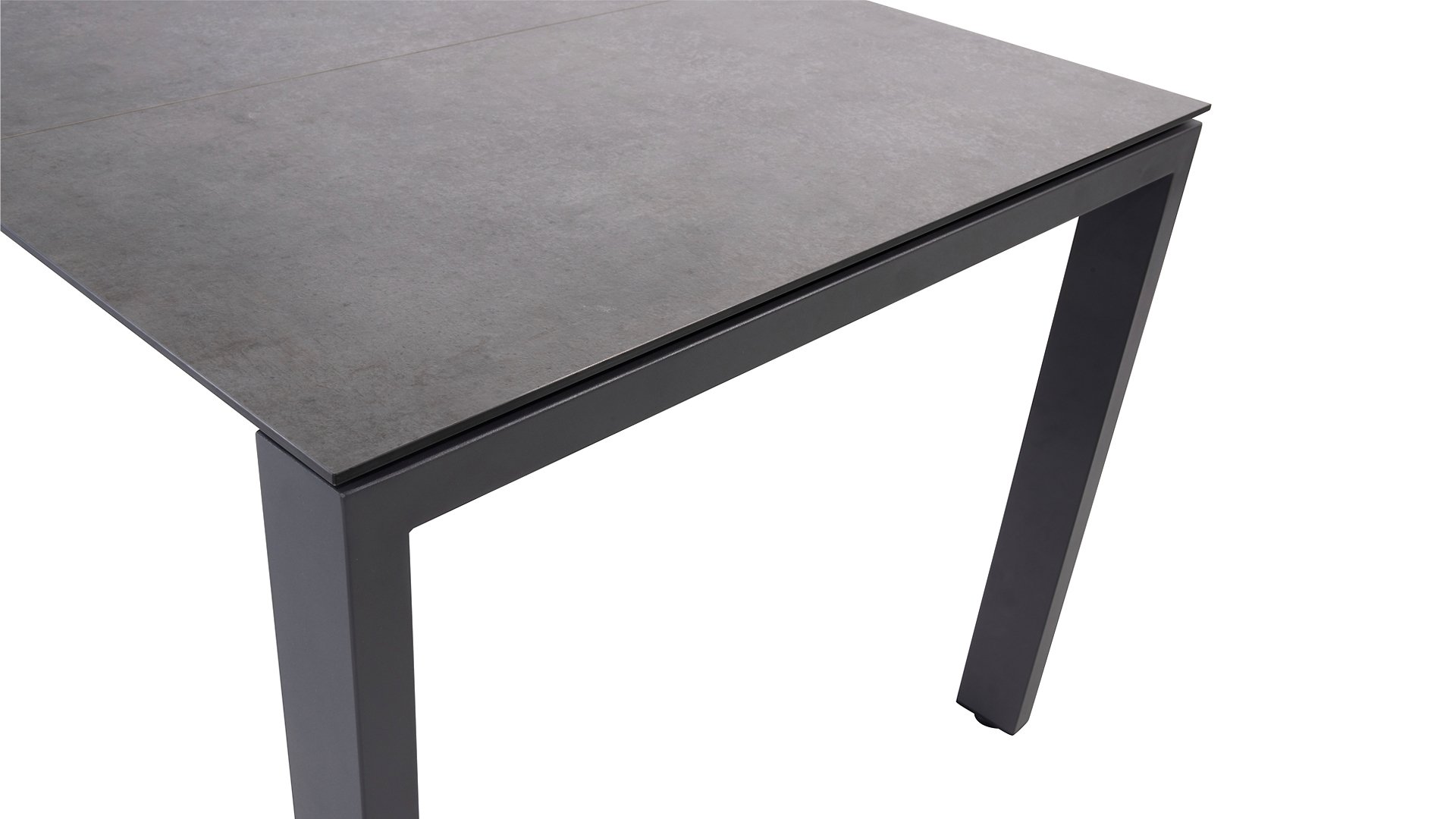 By stacking many thin layers of plastic and compressing them under extremely high pressure (and high temperatures), these layers are formed into a super-strong mass. This panel is incredibly hard and durable. A finishing layer is applied that defines the appearance of your garden table, such as a concrete look. The result of this process is an exceptionally hard tabletop that is weather-resistant. Our HPL garden tables are extremely scratch-resistant, colorfast, and very low-maintenance.