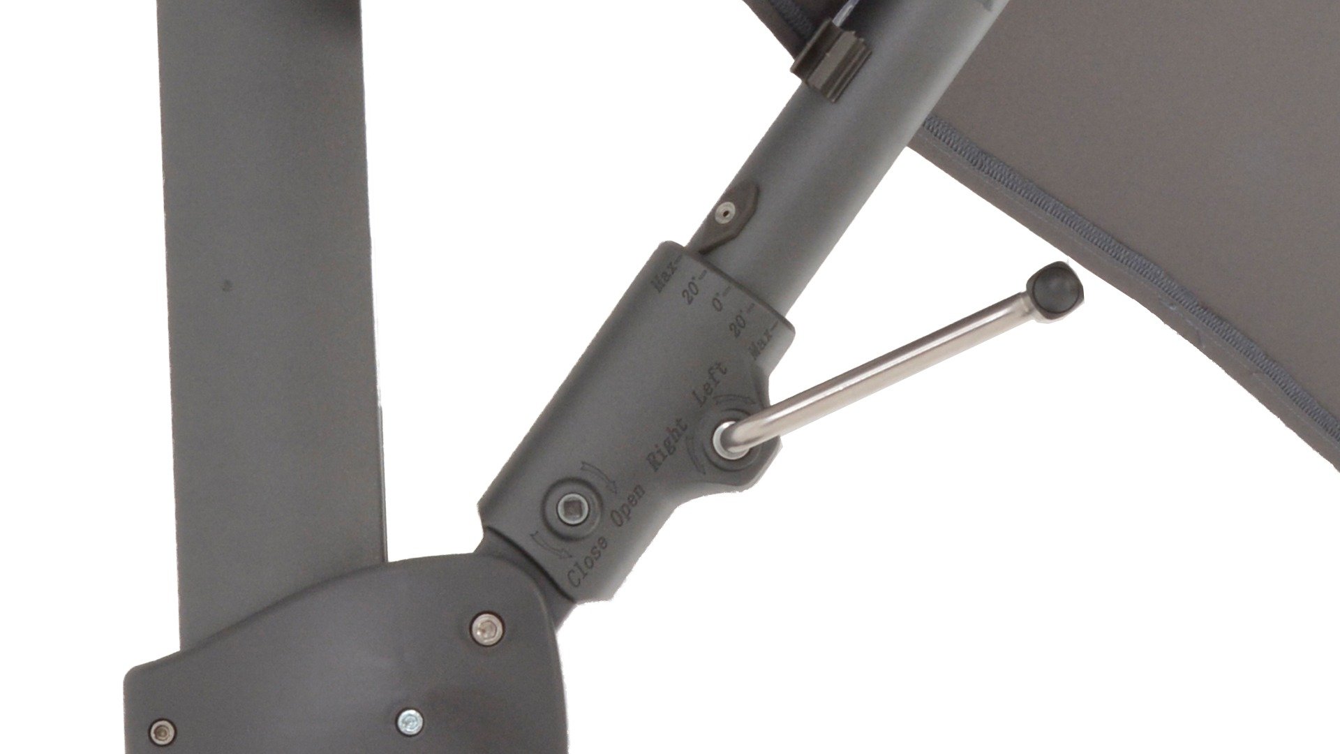 The 4 Seasons Outdoor Horizon parasol is the ultimate free-arm parasol. Easy to rotate 360° thanks to the foot pedal. All models can tilt backwards to an angle of almost 90 degrees. The parasol fabric is made of fully weather-resistant polyester fibers. The frame is made of aluminum and is available in a wide range of finishes. For the 4Seasons Horizon, the Horizon 84kg base is suitable. The Horizon hanging parasol model can also be tilted horizontally to the left or right!