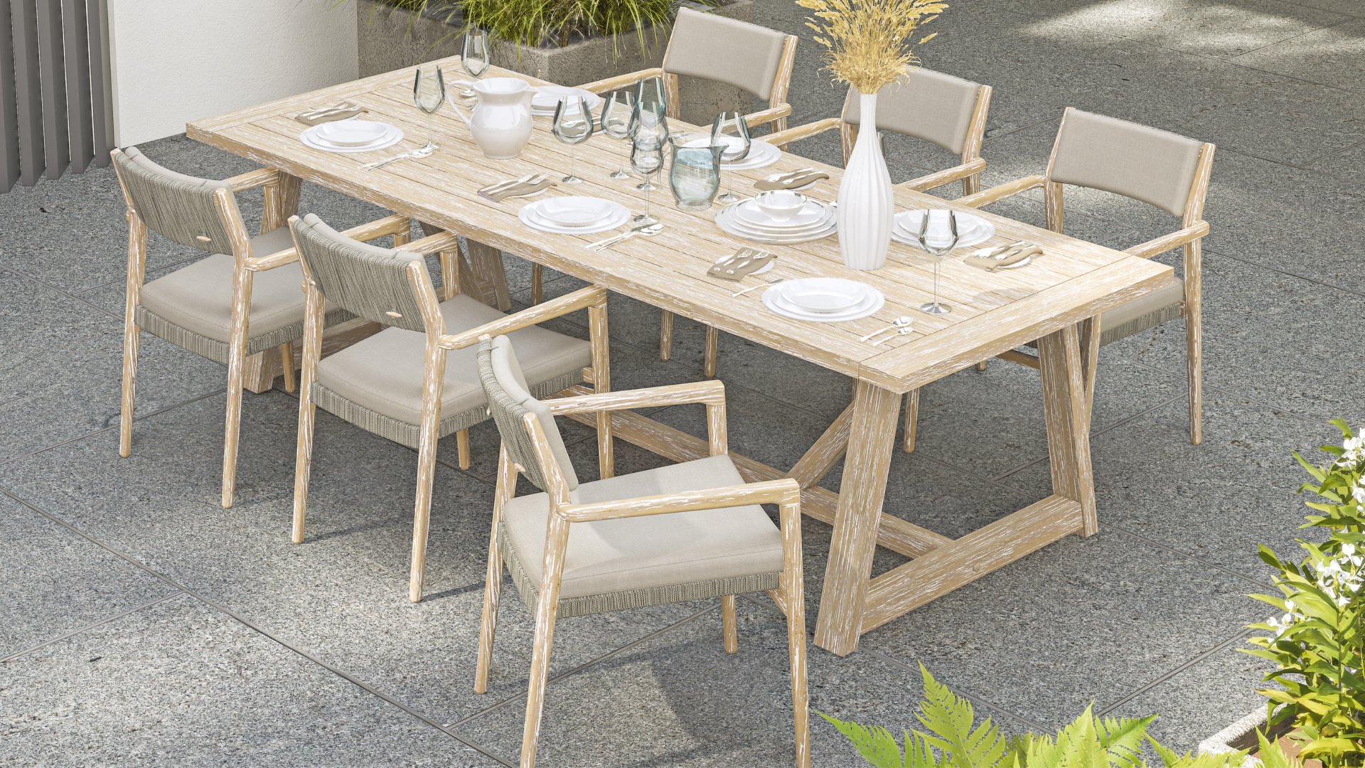 Part of our teak garden furniture range has a light gray color, because it has been treated with a white/grey wash. We call this Instant Grey. This is a water-based product that gives the beautiful appearance of grayed teak. If the gray color of your table top has faded due to cleaning, you can use this product to restore the color.