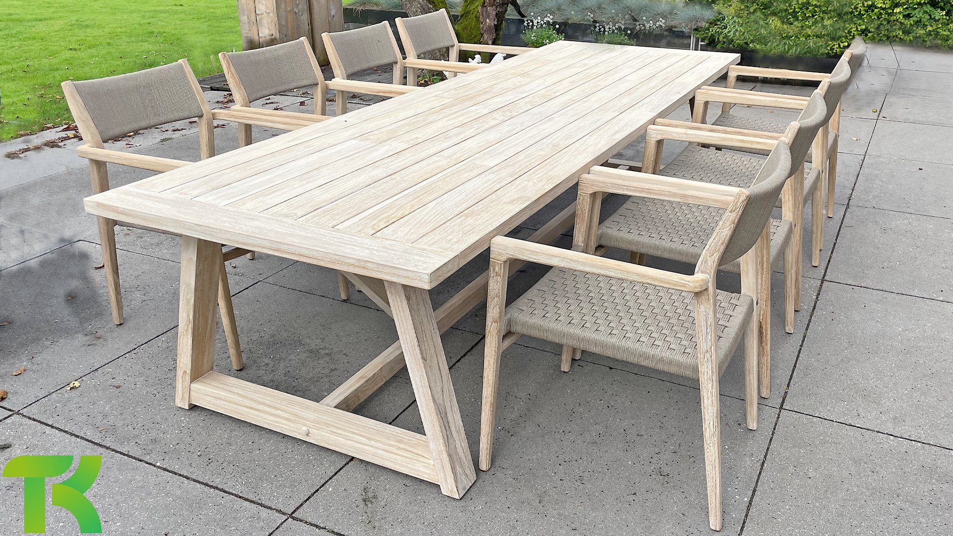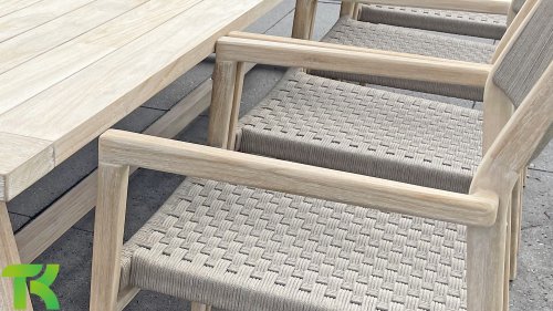 Teak is a natural product and particularly suitable for outdoor use. It is resistant to pests and mold and can withstand sun, rain, and snow. Over time, teak develops a silver-gray patina. Teak is a robust material and requires little maintenance. If you prefer the original color of your teak, you can easily prevent it from turning gray by regularly using our care product. You can also clean teak with green soap. We offer a warranty on all manufacturing and construction defects. This does not include the working of teak. When you choose teak, we expect you to appreciate these qualities. Hairline cracks that may develop, knots in the teak, and rough surfaces or irregular discoloration over time are not covered by our warranty. These characteristics give teak its unique character and appearance; they are part of its natural properties. Be careful with a flowerpot or vase on your teak garden table, as this can cause persistent rings or color variations. Imperfections are common; these imperfections are characteristic of this product. These irregularities can never give ground to a claim, warranty, or complaint. This is a signs ans signature of originality!
