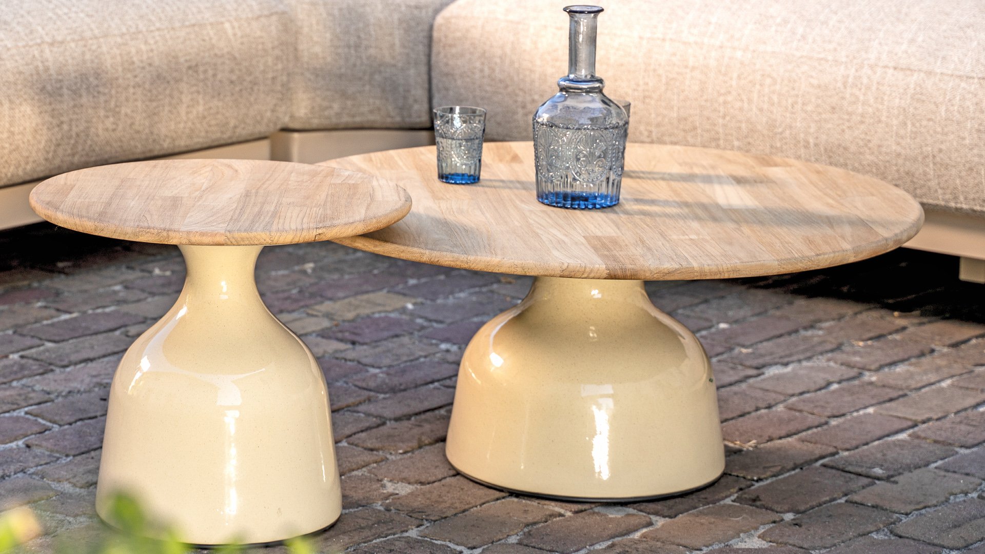 The 4 Seasons Outdoor June coffee table series is an ode to refined simplicity and natural luxury. With a rounded teak top and a striking high-gloss ceramic base, June combines warmth and a modern touch in a single, powerful design.