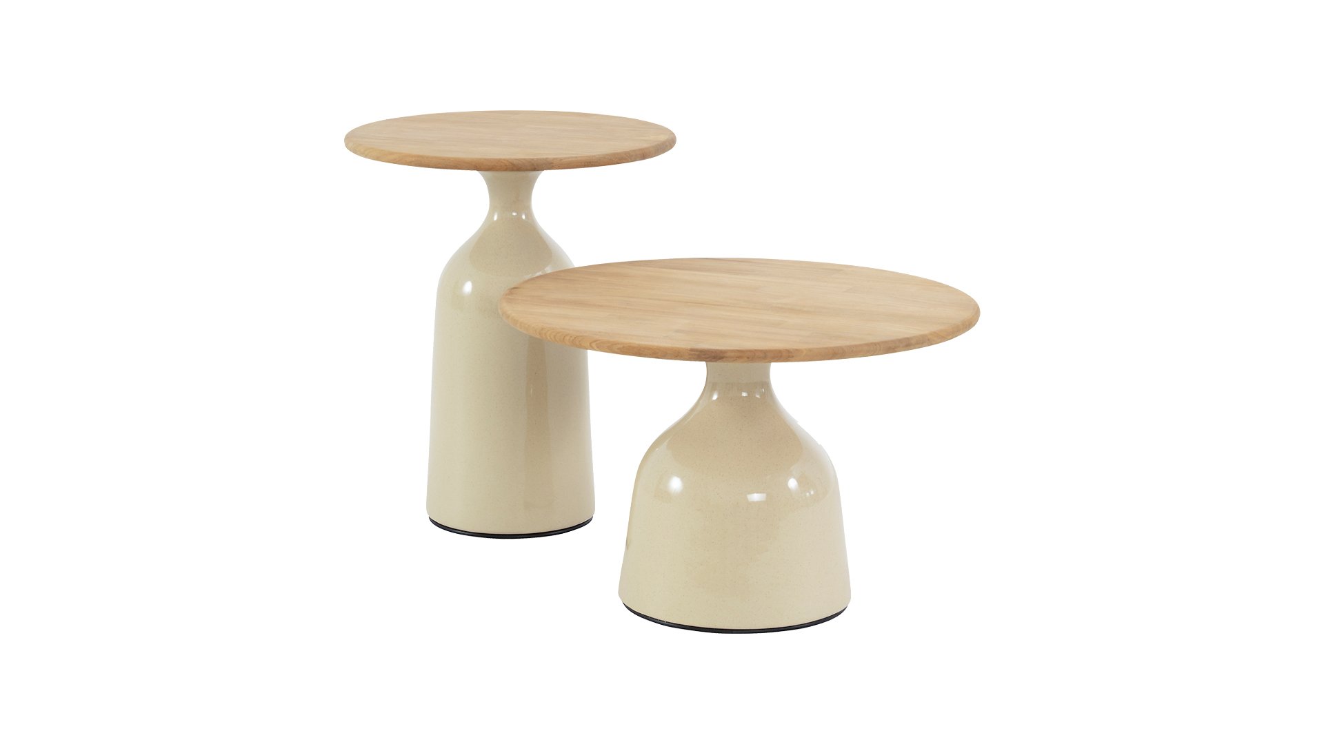 The 4 Seasons Outdoor June coffee table series is an ode to refined simplicity and natural luxury. With a rounded teak top and a striking high-gloss ceramic base, June combines warmth and a modern touch in a single, powerful design.