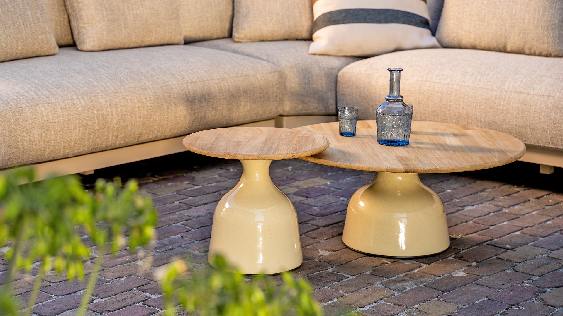 The 4 Seasons Outdoor June coffee table series is an ode to refined simplicity and natural luxury. With a rounded teak top and a striking high-gloss ceramic base, June combines warmth and a modern touch in a single, powerful design.