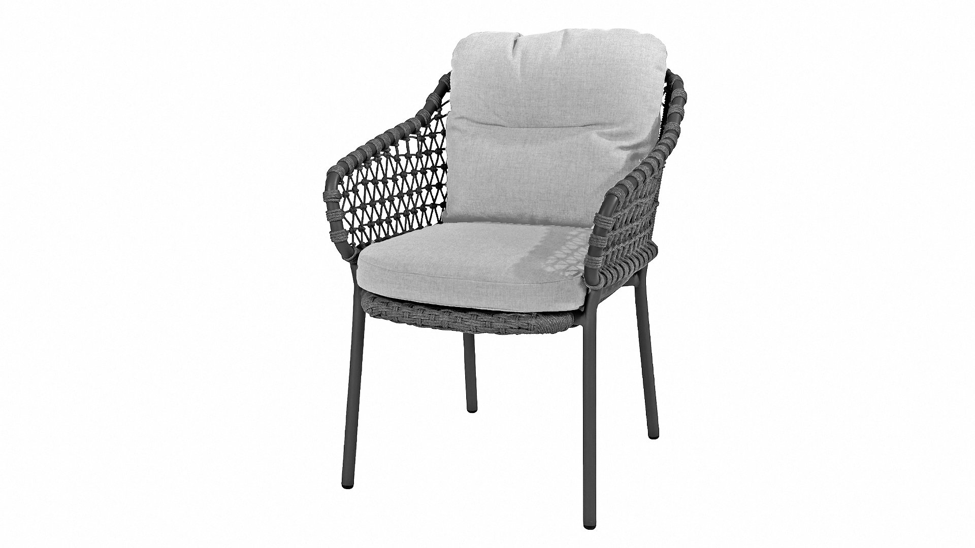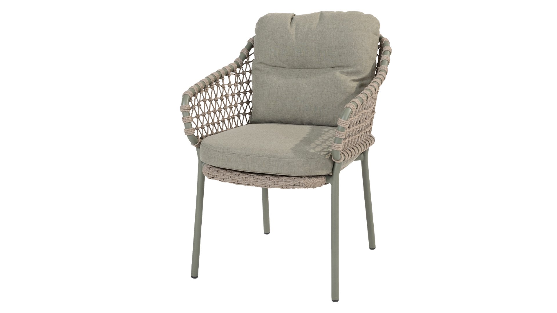 Jura's natural beauty The 4 Seasons Outdoor Jura Anthracite combines anthracite tones with the subtlety of the knotted rope. Beautiful on a teak table and you can also stack it. Take a seat and enjoy. Experience the perfect combination of comfort, natural look, and modern design with the 4SO Jura stackable dining chair Olive. This chair comes with cushions. The Jura has an attractive olive rope weaving and an elegant olive stainless steel frame. We also have the Jura available in Olive Green: 4 Seasons Outdoor Jura Olive.