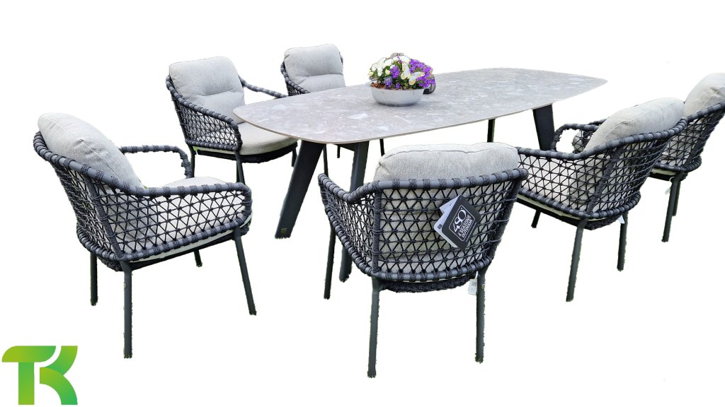 A ceramic top is made of two or three thin layers of ceramic material. Ceramic material is hard-fired and therefore has excellent properties. For normal soiling, simply wipe the top with a damp cloth. Stains can be removed with lukewarm water and green soap, and limescale can be treated with natural vinegar. However, never use harsh abrasives, such as sandpaper, or aggressive agents such as acids and chemicals. Spills of this kind must be removed immediately to prevent irreparable damage. Note: We strongly advise against cleaning your aluminum or ceramic garden furniture with a pressure washer or harsh cleaning agents and/or bleach. These can remove the coating or cause irreparable damage. There is also a risk of discoloration. We advise against covering your furniture for extended periods or covering it with decorations or other items, as this can cause permanent stains or discoloration. Always be careful with fire, oil and grease or hot objects near your furniture as this may cause permanent damage.