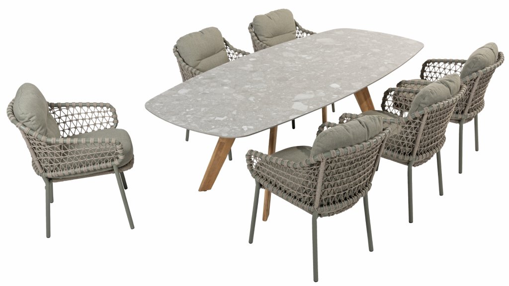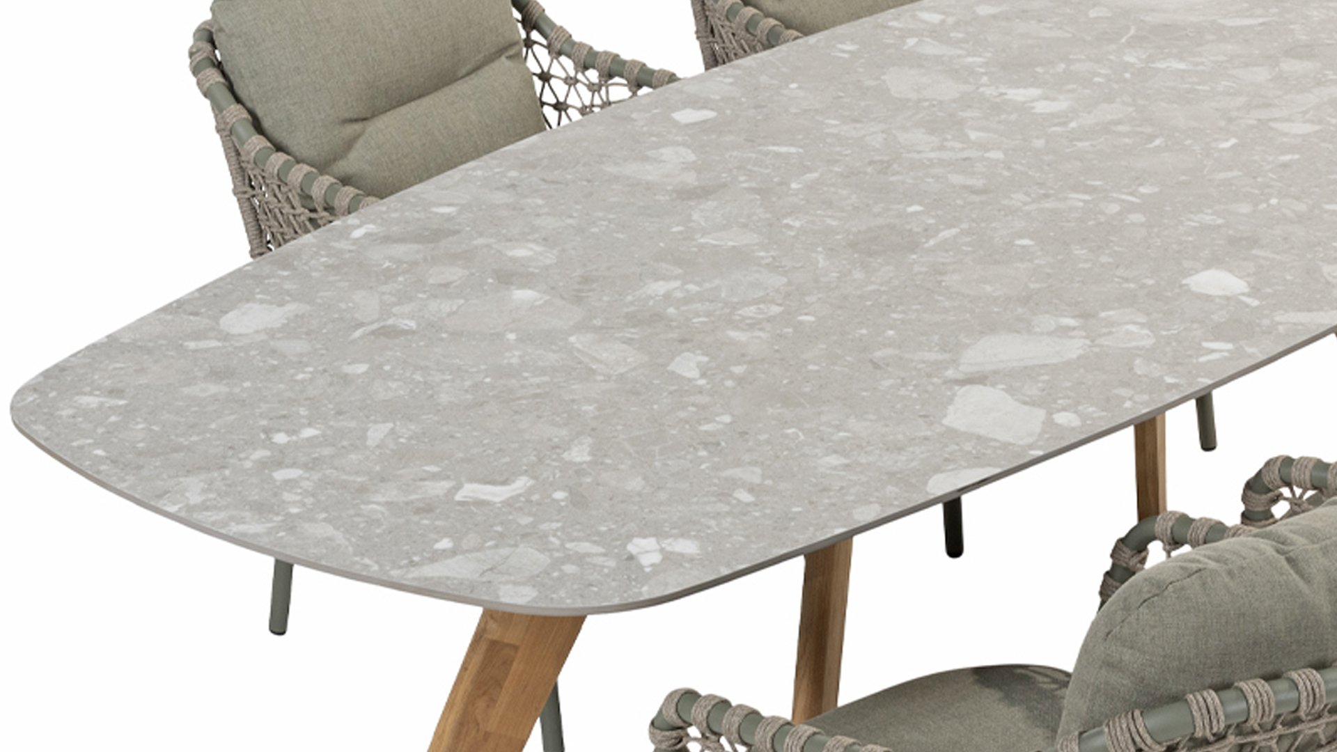 The 4Seasons Outdoor Montana is a beautiful table that stands out. It not only looks modern, but is also incredibly practical due to the shape of the tabletop. The table stands out with its Danish oval tabletop, which creates enough space on all sides of the table. Within the Montana series, there are different options; the 240 cm terrazzo ceramic top can be combined with a stainless steel or teak base. Within the Montana series, there is also a 280 cm table with an HPL top.