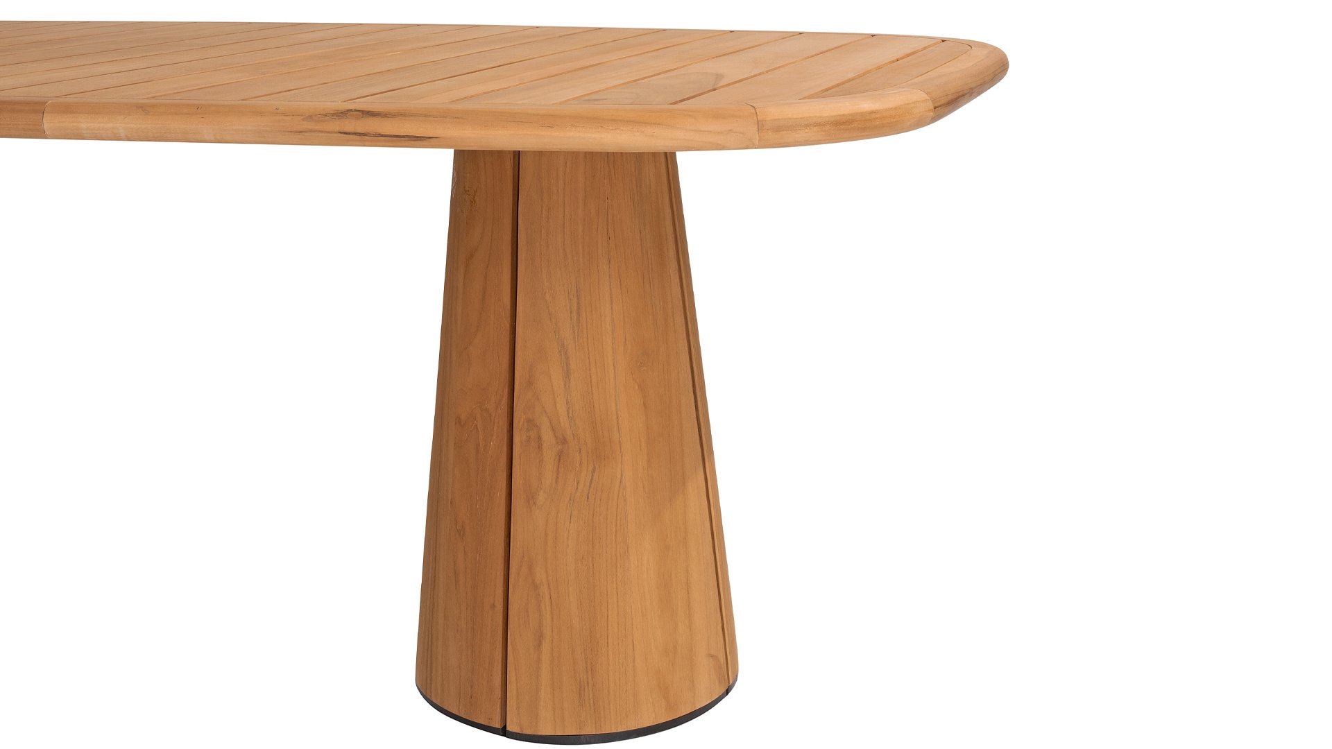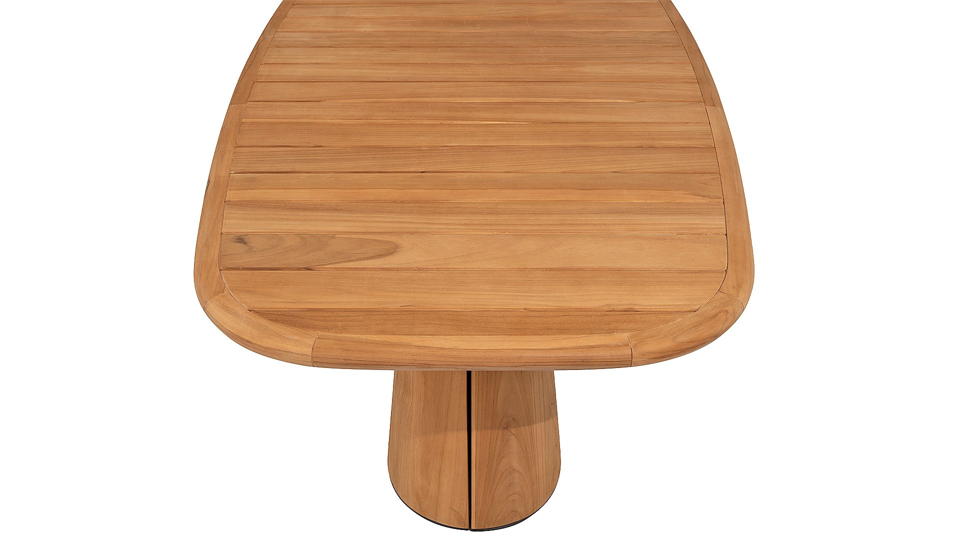 The Capri is a beautiful addition to any interior, entirely made of high-quality teak wood. The top has a false oval shape, giving it a playful yet elegant look. This unique shape provides more space for dinners and conversations while adding a modern and organic feel to the space.