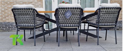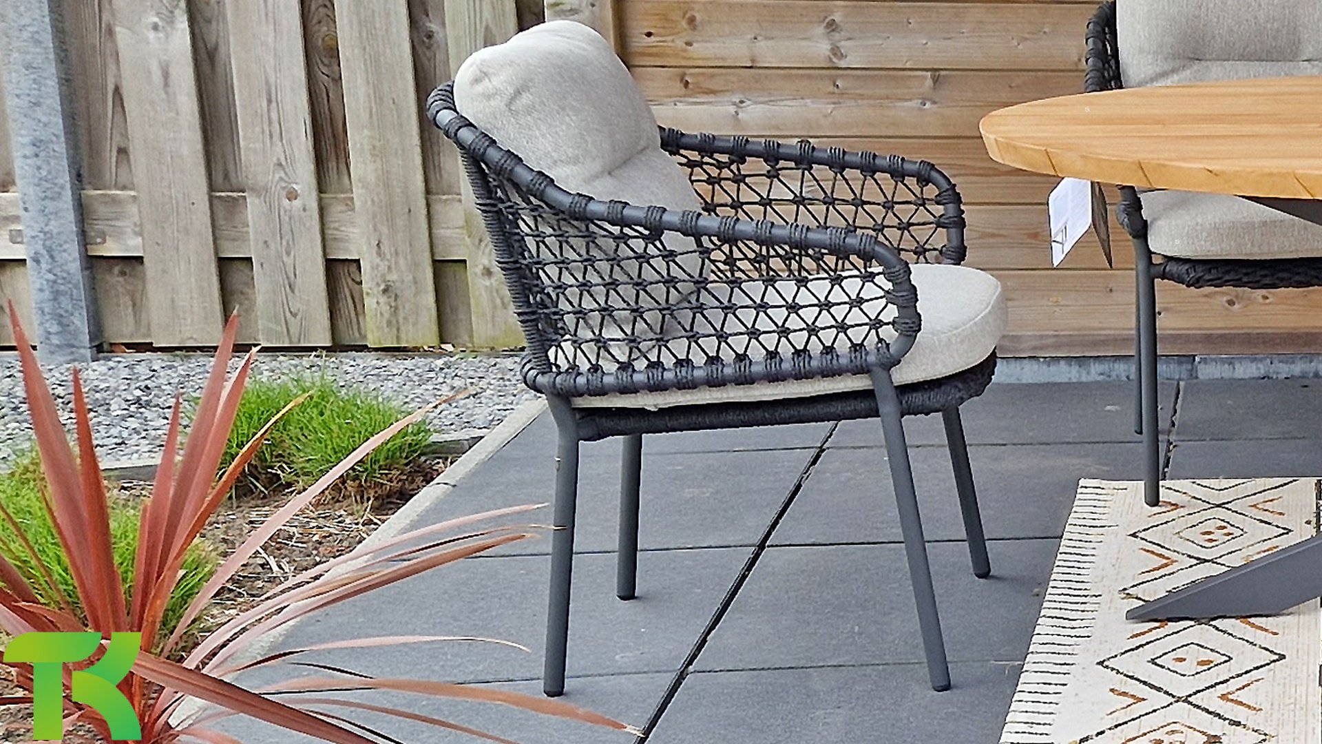 Jura's natural beauty. Beautiful on an anthracite table and you can also stack it. Take a seat and enjoy. Experience the perfect combination of comfort, appearance, and modern design with the 4SO Jura Dining Anthracite. This chair comes with cushions. The Jura has an attractive anthracite rope weave and an elegant anthracite stainless steel frame. The Jura is also available in Olive, see here: 4 Seasons Outdoor Jura Garden Set Olive.