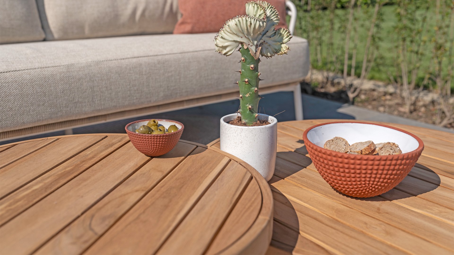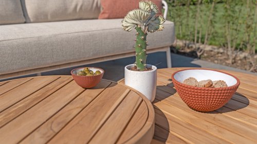 The 4 Seasons Outdoor Finn coffee table series made of teak wood adds a touch of class and functionality to your outdoor space. These coffee tables can be added to a large part of our lounge sets. Teak wood can be perfectly combined with many materials and colors. Create a set of these 4SO Finn coffee tables, choose a combination of the large and/or small round variant or the rectangular one so that you have a unique addition to your lounge set.