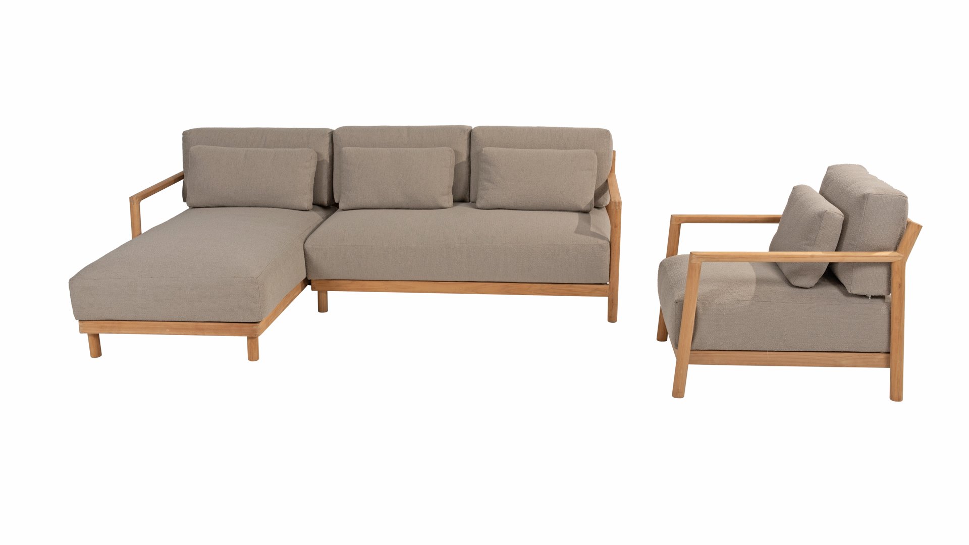 Discover the perfect combination of style and comfort with our beautiful teak woodlounge set 4Seasons Outdoor Marie!This set is made of high-quality teak wood, known for its durability and weather resistance. The warm boucle cushions provide a luxurious appearance and optimal seating comfort, ideal for any outdoor space.