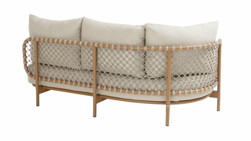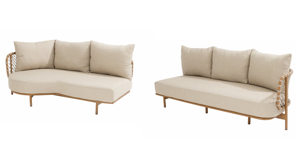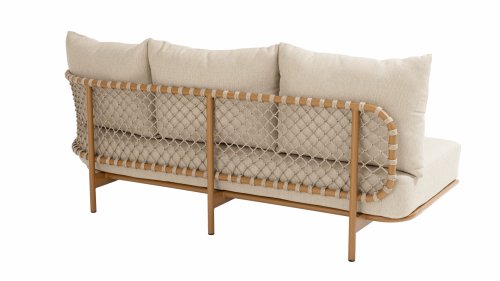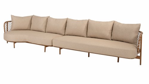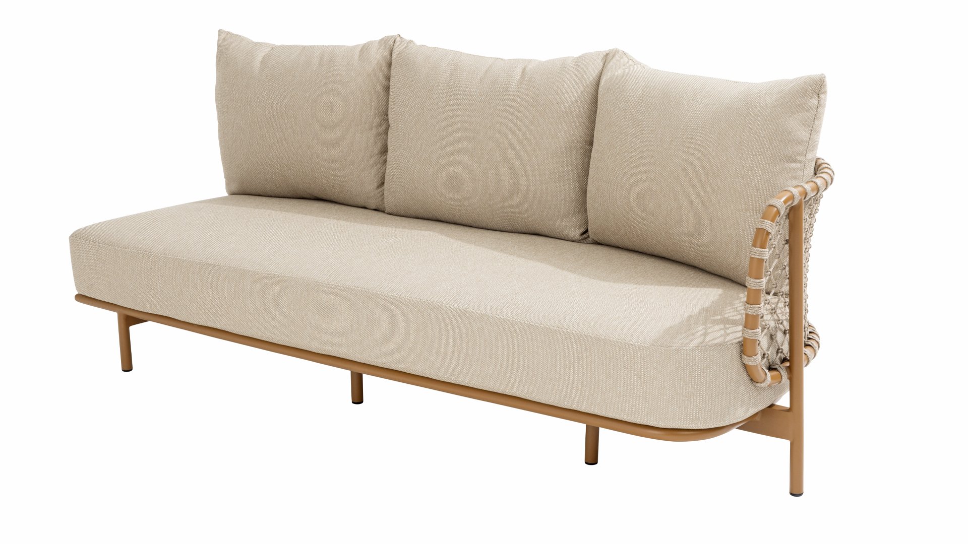 The open-woven rope design in warm amber tones gives the Martinique Lounge an airy, modern look. The rounded corners of the elements and the deep, soft cushions invite you to lounge in style for hours. The natural sand-colored upholstery perfectly complements a peaceful, harmonious outdoor environment.