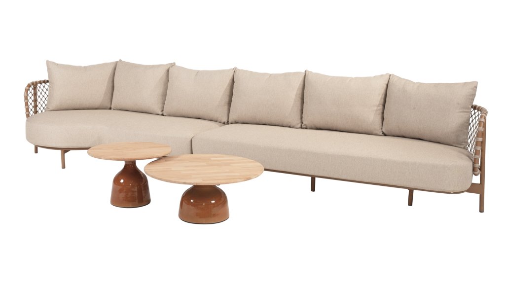 Experience timeless luxury with the Martinique lounge set from 4 Seasons Outdoor. The striking knotted rope design gives a playful yet refined character, while the amber-colored frame adds warmth and ambiance to your garden or terrace. This set is perfect for those seeking a combination of style and comfort.