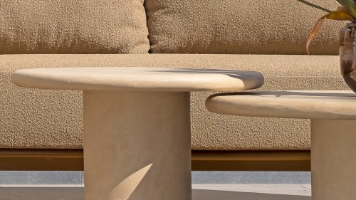 Mortex is made from a mixture of lime, cement, and fine mineral powders. Pigments and resins are added to this mixture to make it flexible, waterproof, and adhere well. It is applied by hand in thin layers and then sanded and finished with a protective sealer or wax. This creates a seamless, strong, and stylish surface suitable for furniture, floors, and walls, among other things. A Mortex garden table is weatherproof. Rain, sunlight, and temperature fluctuations have little effect on the material, provided the table is properly finished with a protective layer. It is important to be careful with acidic substances such as lemon juice, vinegar, or wine. If these remain on the surface for too long, they can damage the protective layer and cause stains.