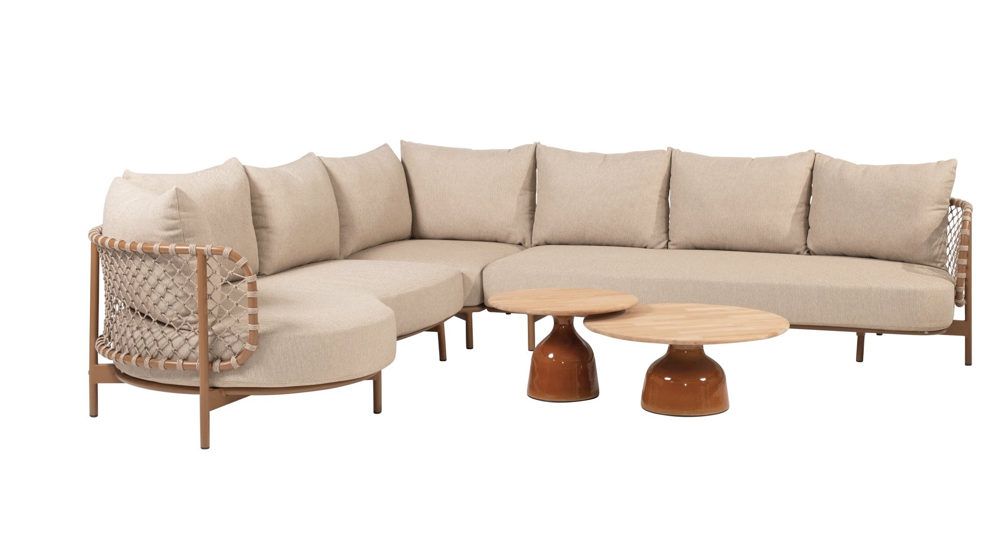 Experience timeless luxury with the Martinique lounge set from 4 Seasons Outdoor. The striking knotted rope design gives a playful yet refined character, while the amber-colored frame adds warmth and ambiance to your garden or terrace. This set is perfect for those seeking a combination of style and comfort.