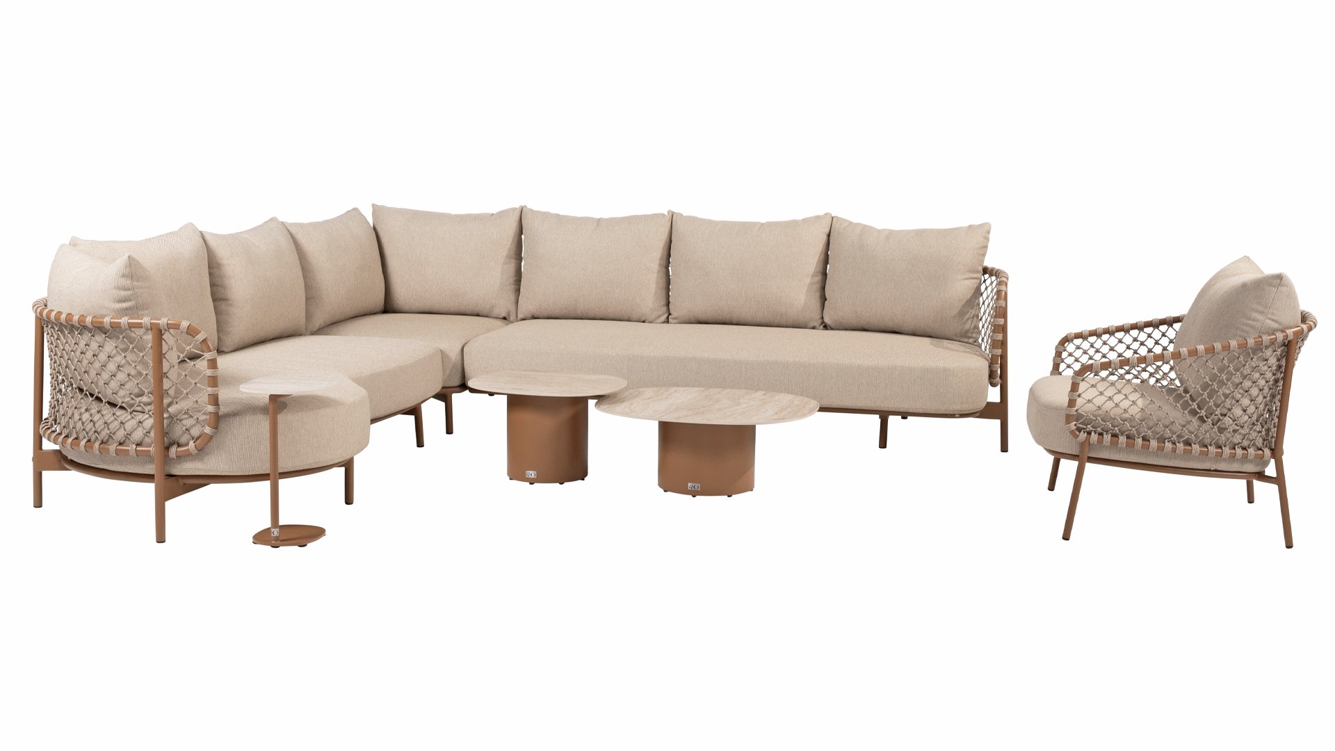Experience timeless luxury with the Martinique lounge set from 4 Seasons Outdoor. The striking knotted rope design gives a playful yet refined character, while the amber-colored frame adds warmth and ambiance to your garden or terrace. This set is perfect for those seeking a combination of style and comfort.