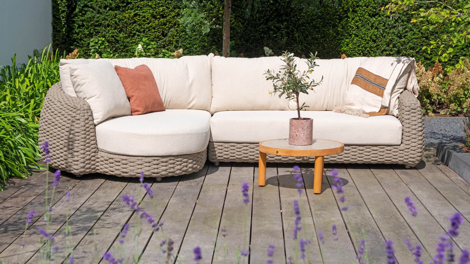 This beautiful material is perfect for outdoor use, because Taste Rope isn't just any shoelace. Taste uses very high-quality rope made from 100% SDP (Solution Dyed Polypropylene). This material is extremely strong and has very little stretch. Polypropylene is oil-based, making it virtually impermeable to dirt and contaminants, just like our cushions. Taste offers exclusive designs using hand-woven rope patterns and techniques.