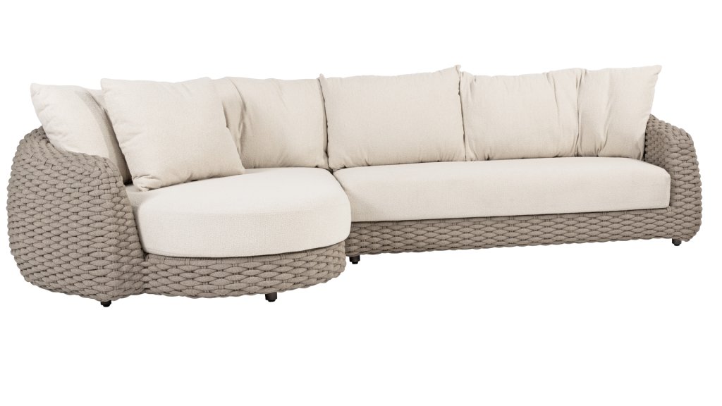 Enhance your lounge experience with the Maxime lounge from 4 Seasons Outdoor. This 4SO Maxime lounge set is a perfect addition to your luxury terrace. The stunning curves are a sight to behold, while the thick lounge cushions in cream bouclé fabric provide total relaxation.