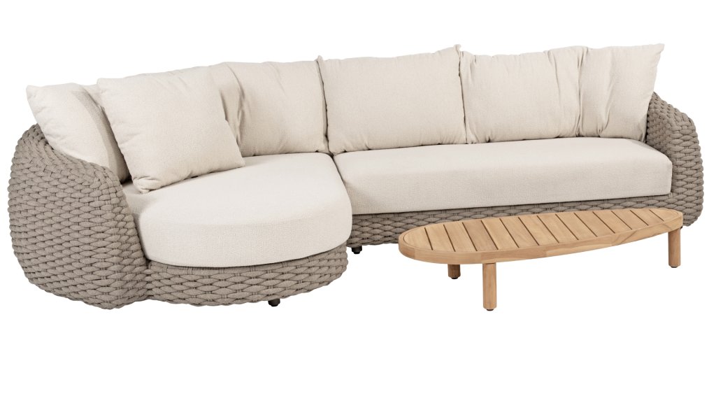 Enhance your lounge experience with the Maxime lounge from 4 Seasons Outdoor. This 4SO Maxime lounge set is a perfect addition to your luxury terrace. The beautiful curves are a feast for the eyes, while the thick lounge cushions in cream-colored boucle fabric provide complete relaxation.