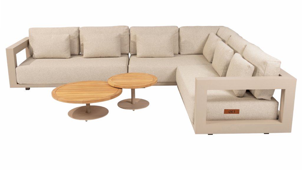 4SO Metropolitan Latte is one of the newest lounge sets from 4 Seasons Outdoor. Metropolitan has a modern look with its robust cubist aluminum frame. Thanks to the extremely thick cushions (partly sunk into the frame), you can comfortably sit in the sun for hours.