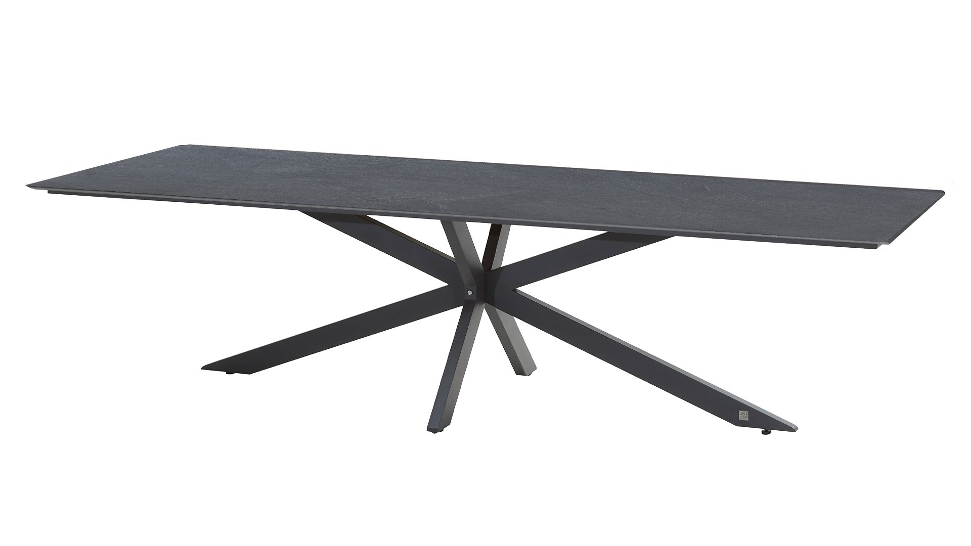 4 Seasons Outdoor Minerva consists of an artistically designed cross-base frame in combination with various tops. The table is available in sizes of 220 and 280 centimeters. The table, thanks to its powder-coated frame, is excellently suited for outdoor life. The table can be combined with the following tops: