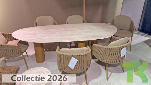 The frame is crafted from powder-coated stainless steel in a warm, earthy amber tone, combined with strikingly thick rope wickerwork. This artisanal finish gives the Amber series a robust yet refined appearance. The weather-resistant Olefin cushion covers are UV- and mildew-resistant – ideal for years of outdoor use. The chair's shell provides comfortable back and arm support.