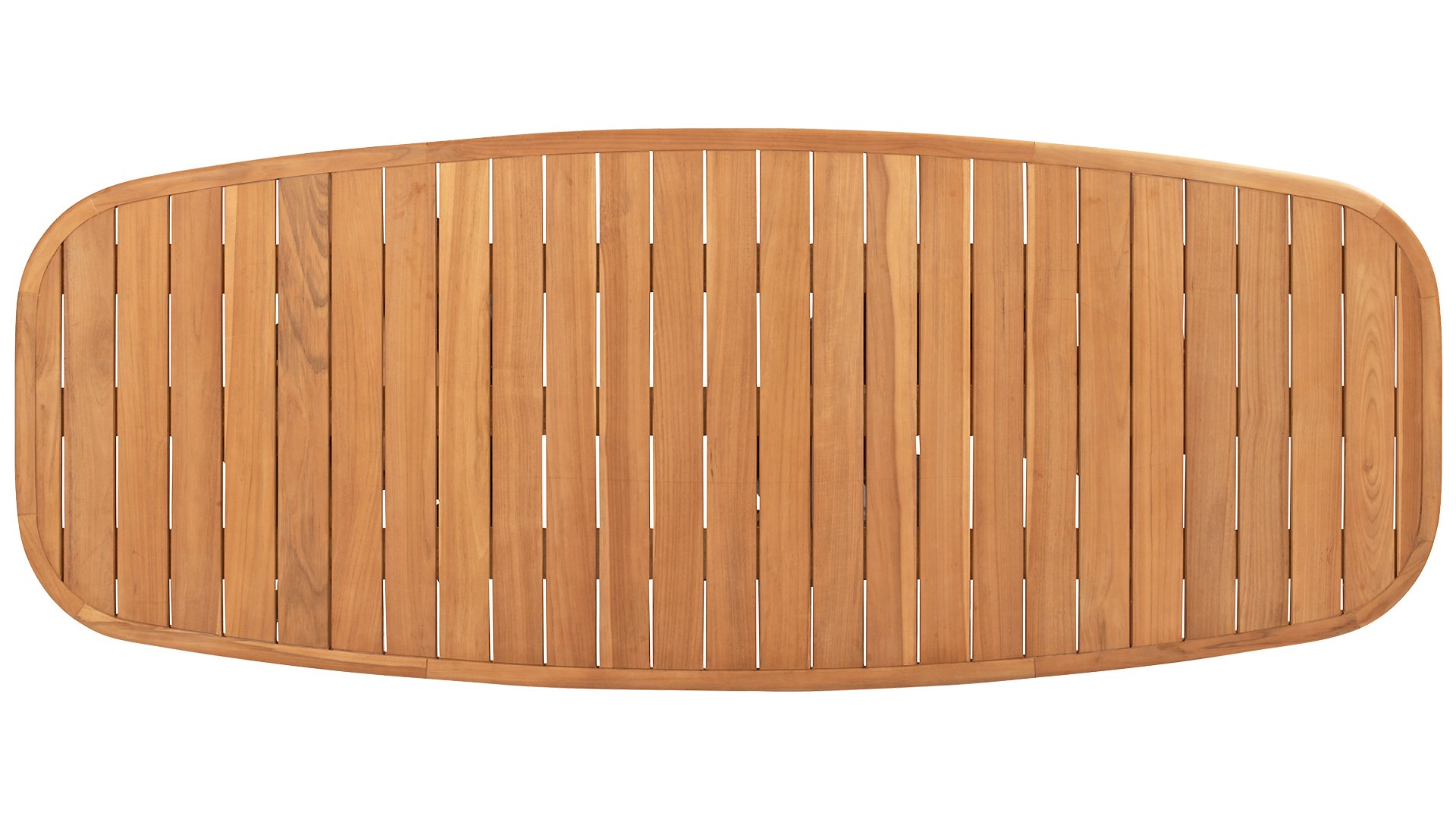 The Capri is a wonderful addition to any interior, entirely made of high-quality teak wood. The top has a false oval shape, giving it a playful yet elegant look. This unique shape provides more space for dinners and conversations, while adding a modern and organic feel to the space.