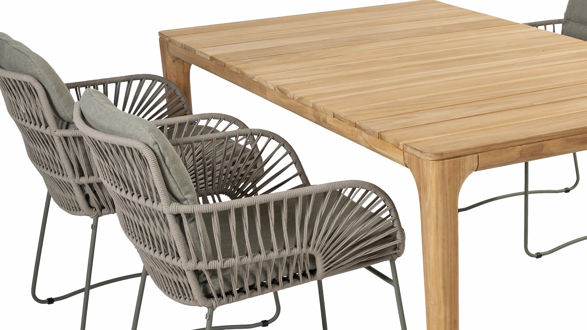 This beautiful material is perfect for outdoor use, because 4SO Rope is not just an shoelace. Our round wires have a synthetic core. This polypropylene base ensures minimal stretching of the rope and also does not absorb moisture. The covering is made of an acrylic fabric, similar to the weather-resistant fabric of our garden cushions. This covering feels soft but is highly water-repellent, UV-resistant, and colorfast. The flat rope variants have the same mix of weather-resistant materials, but the polypropylene material is interwoven with the acrylic fabric. This technique gives the flat rope the same properties but a completely different look. The stretch is minimal, and 4 Seasons Outdoor garden furniture with Rope is suitable for people weighing up to 110 kg. It's therefore an exceptionally strong material, but it's important to be careful with sharp objects. Our Rope is weather-resistant, but a sharp object can seriously damage your garden furniture. We offer exclusive designs using hand-woven Rope patterns and techniques.