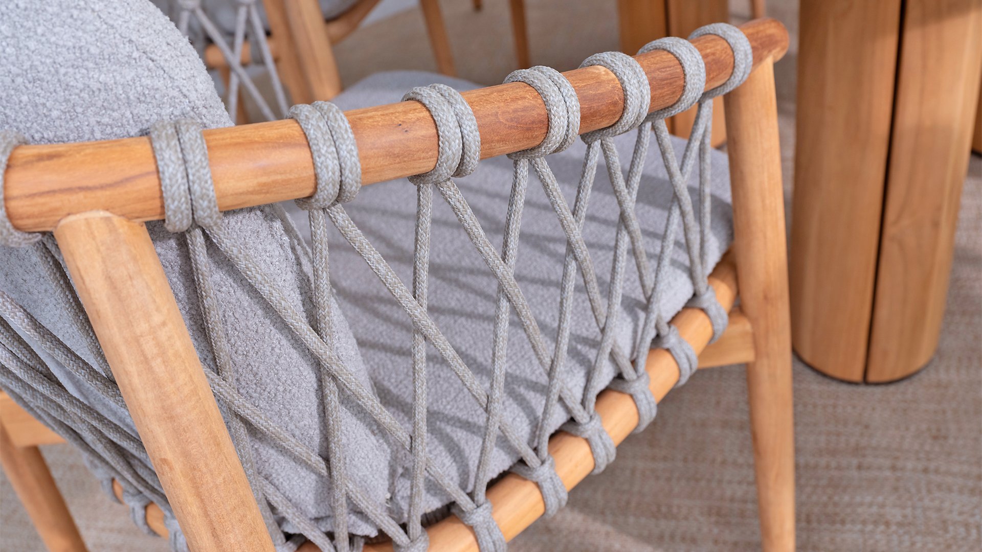 • Modern Aesthetic: The design of the Nora chair with rope detail and Bouclé upholstery gives a contemporary look that fits perfectly in any garden or on a terrace.