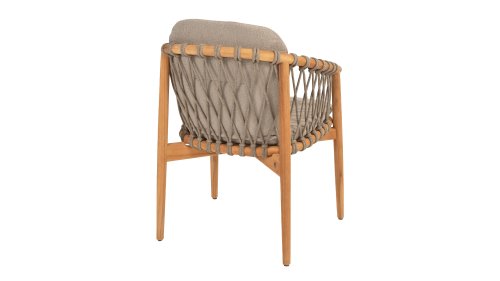The 4 Seasons Outdoor Nora is a stylish and comfortable addition to your outdoor space. Made from durable teak wood and featuring elegant rope detailing, this chair not only offers a beautiful appearance but also a sturdy construction. The cushions are covered with Olefin and finished with trendy Bouclé upholstery, providing a luxurious feel and comfort.