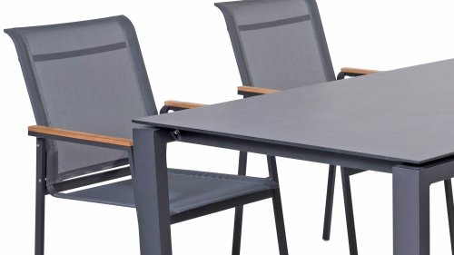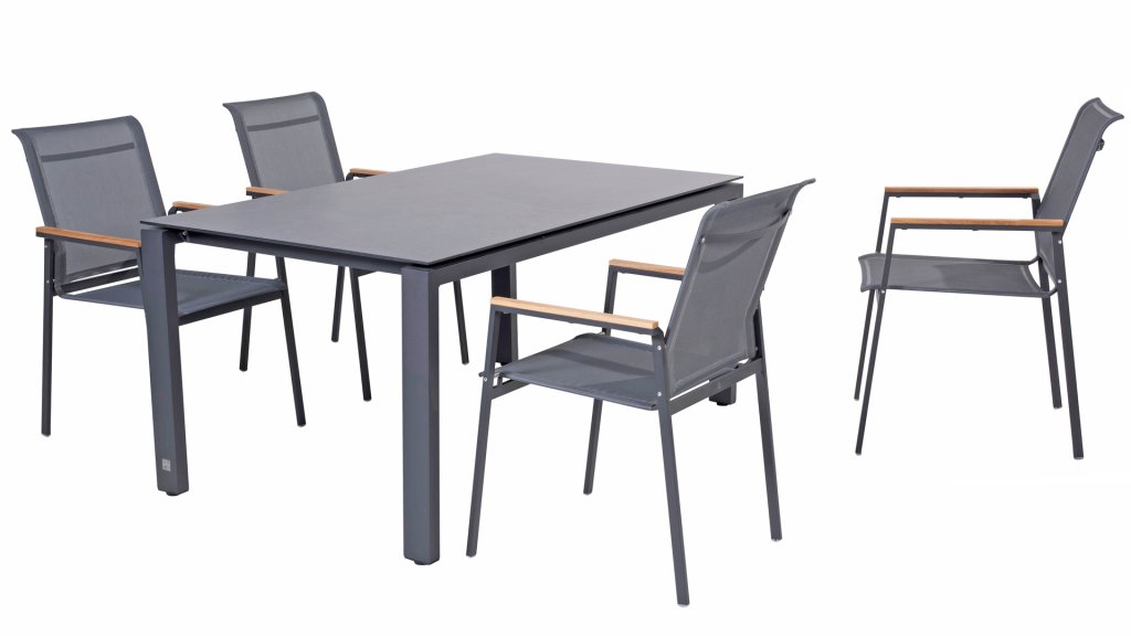 The stackable chair from the 4 Seasons Outdoor Passion series is the perfect combination of high-quality anthracite powder-coated stainless steel, twitchell textilene, and warm teak wood. Due to the interaction of the different materials, these chairs can be versatilely combined with various tables. If you are looking for a modern and functional design, the 4 Seasons Outdoor Passion stackable chairs will definitely meet your needs. The strong and minimalist frame has a textilene seat and high backrest. Leave them outside all year round or stack them easily and store them away.