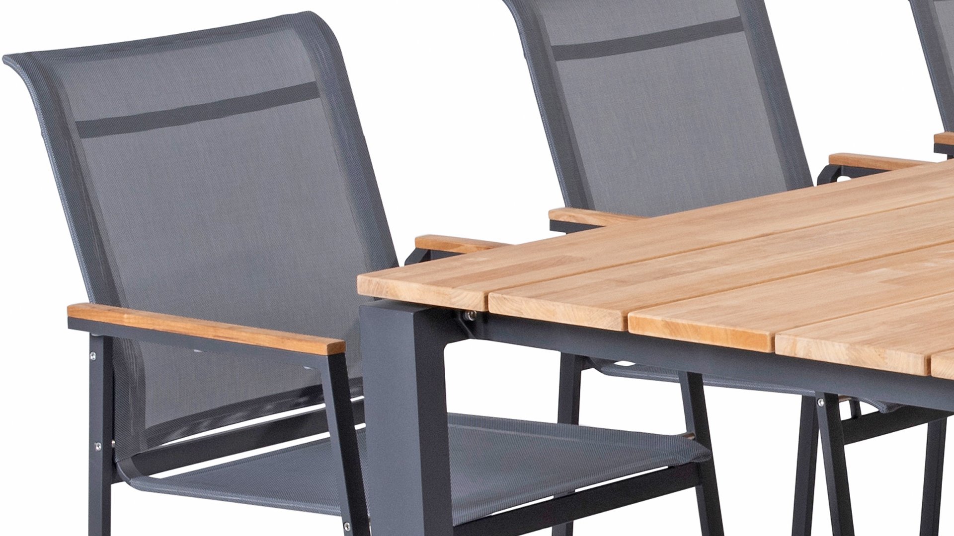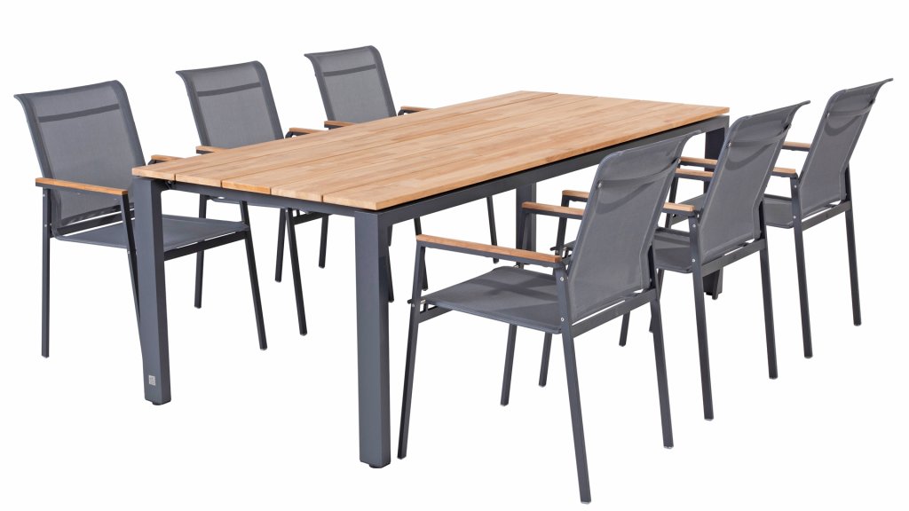The stackable chair from the 4 Seasons Outdoor Passion series is the ideal combination of high quality anthracite powder-coated stainless steel, twitchell textilene and warm teak wood. Thanks to this interaction of the different materials, these chairs can be combined in various ways with different tables. If you are looking for a modern and functional design, the 4 Seasons Outdoor Passion stacking chairs will certainly meet your needs. The strong and minimalist frame has a textilene seat and high backrest. Leave them outside all year round or easily stack them and put them away.