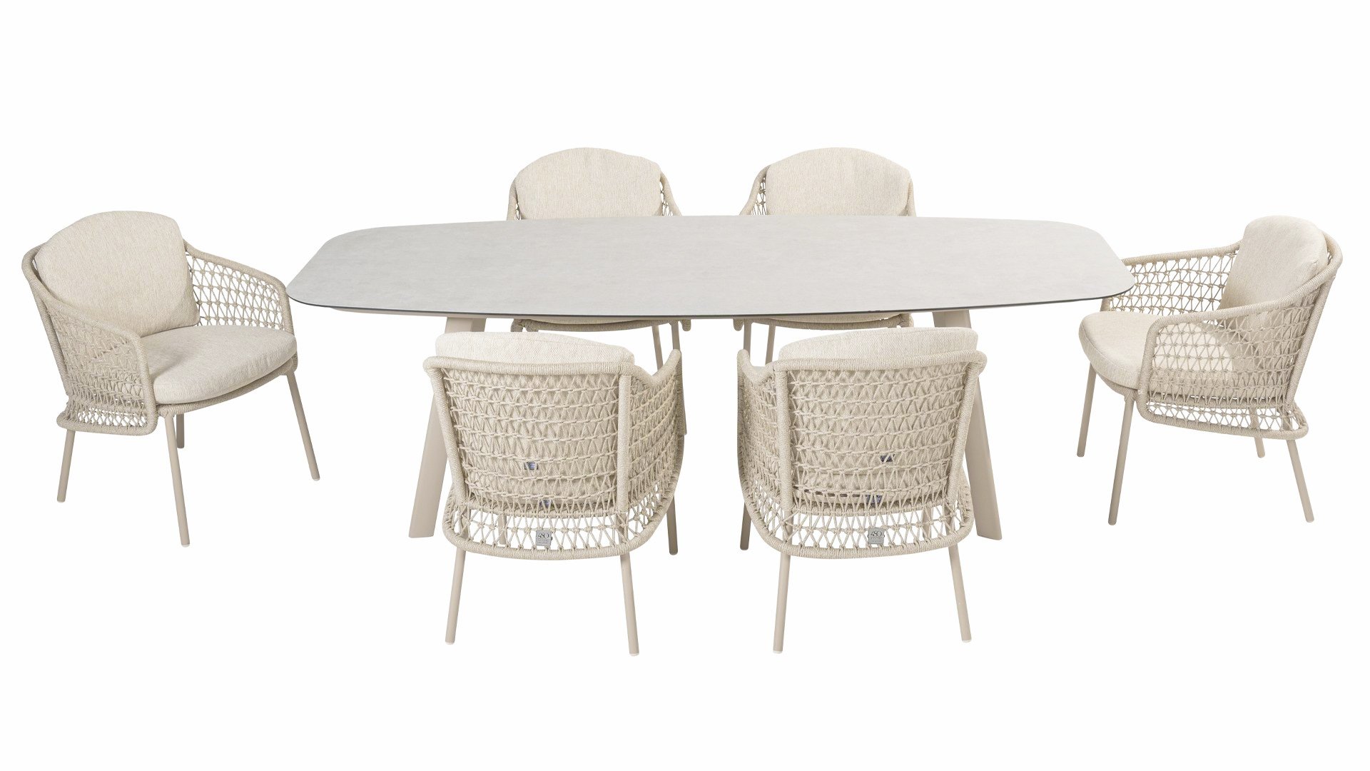Composing a true masterpiece. Creativity is required to bring something completely new. And that's exactly what 4 Seasons Outdoor has done: the latte color of 4SO Puccini takes center stage in both the frame, cushions, and in the surprising rope pattern. The Puccini is a complete series consisting of dining and living in the same style: 4 Seasons Outdoor Puccini Dining & 4 Seasons Outdoor Puccini Lounge Set. This allows you to stay stylish by combining them. The frame of the Puccini series is powder-coated in the new color Latte. Latte is a soft and natural color, ideal if you want something other than gray for a change.