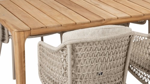 A rope may seem slightly weaker than, for example, wicker. Yet, the raw materials for these materials are almost identical. Stretch is minimal; 4 Seasons Outdoor garden furniture with Rope is suitable for people weighing up to 110 kg. It is therefore an exceptionally strong material, but it is important to be careful with sharp objects. Our 4SO Rope is weather-resistant, but a sharp object can seriously damage your garden furniture. We offer a full 5-year warranty on manufacturing and construction defects. Should any damage unexpectedly occur, it can usually be repaired. In that case, always contact your point of sale. 4Seasons offers exclusive designs using hand-woven Rope patterns and techniques.