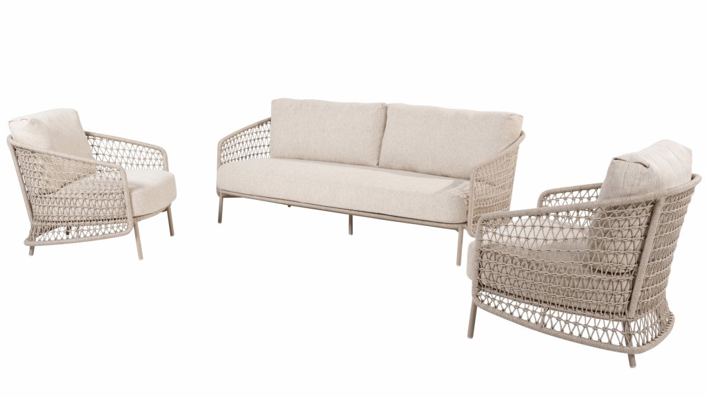 Composing a true masterpiece. Creativity is needed to bring something completely new. And that is exactly what 4 Seasons Outdoor has done: the latte color of 4SO Puccini takes the lead in both the frame, cushions, and the surprising rope pattern. The Puccini is a complete series consisting of dining and living in the same style: 4 Seasons Outdoor Puccini Dining & 4 Seasons Outdoor Puccini Lounge Set. This allows you to remain stylish by combining. The frame of the Puccini series is powder-coated in the new color Latte. Latte is a soft and natural color, ideal if you want something different than grey.