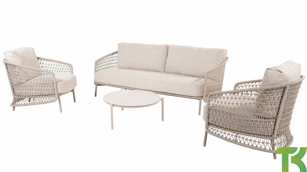 Composing a true masterpiece. It takes creativity to bring something completely new. And that's exactly what 4 Seasons Outdoor has done: the latte color of 4SO Puccini takes the solo in both frame, cushions, and in the surprising rope pattern. The Puccini is a complete series consisting of dining and living in the same style: 4 Seasons Outdoor Puccini Dining & 4 Seasons Outdoor Puccini Lounge Set. This allows you to remain stylish by combining. The frame of the Puccini series is powder-coated in the new color Latte. Latte is a soft and natural color, ideal if you want something different from grey.