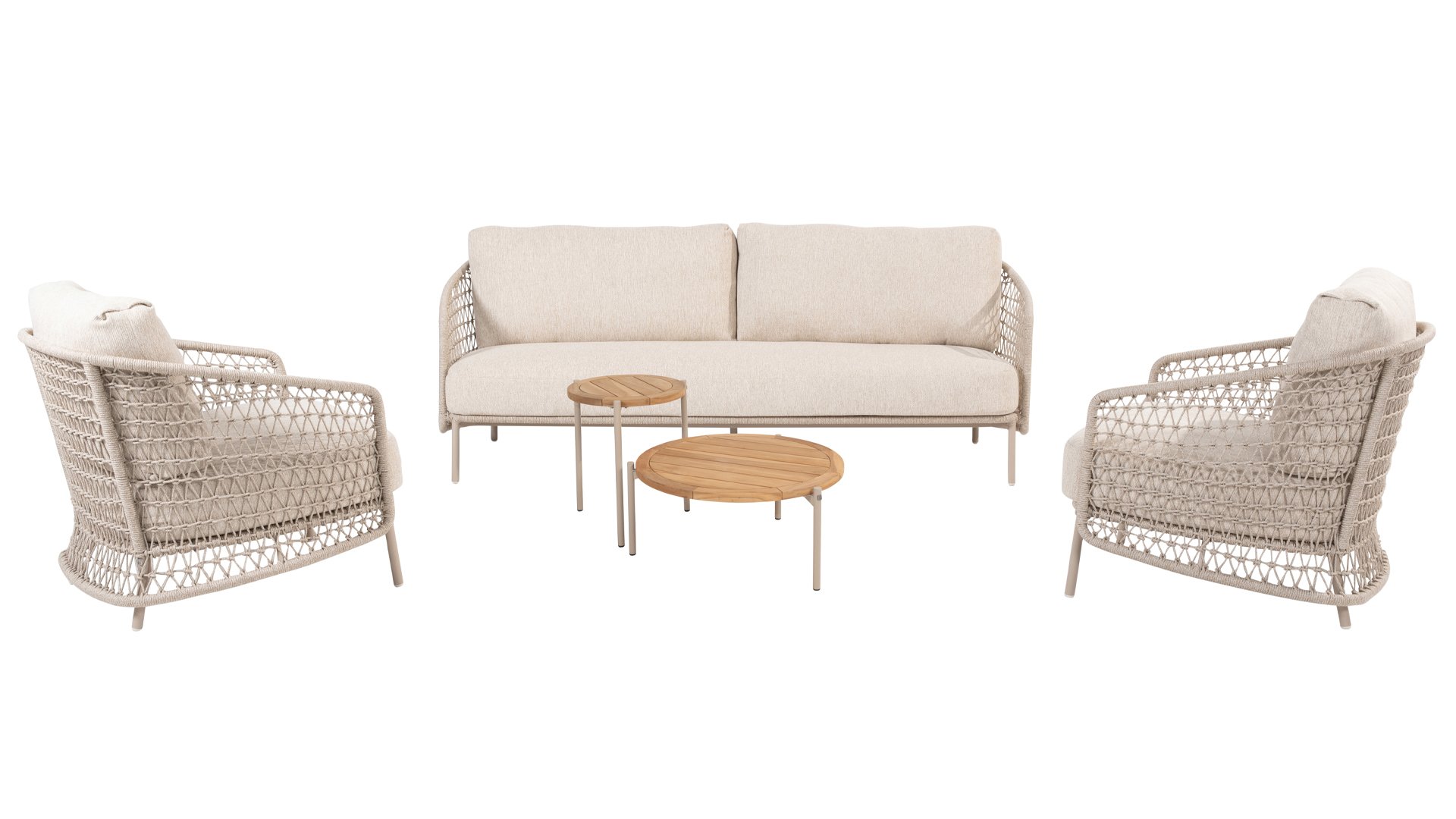 Composing a true masterpiece. It takes creativity to bring something completely new. And that is exactly what 4 Seasons Outdoor has done: the latte color of 4SO Puccini takes the solo in both the frame, cushions, and the surprising rope pattern. The Puccini is a complete series consisting of dining and living in the same style: 4 Seasons Outdoor Puccini Dining & 4 Seasons Outdoor Puccini Lounge Set. This allows you to stay stylish by combining. The frame of the Puccini series is powder-coated in the new Latte color. Latte is a soft and natural color, ideal if you want something different than grey for a change.