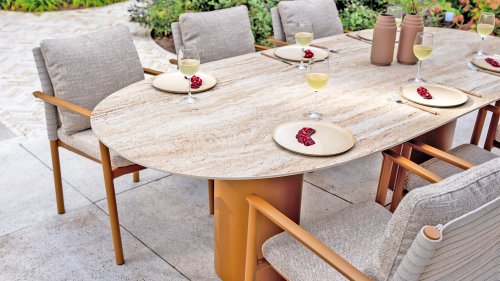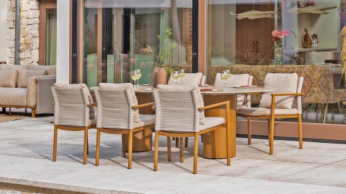 A ceramic top is made of two or three thin layers of ceramic material. Ceramic material is hard-fired and therefore has excellent properties. For normal soiling, simply wipe the top with a damp cloth. Stains can be removed with lukewarm water and green soap, and limescale can be treated with natural vinegar. However, never use harsh abrasives, such as sandpaper, or aggressive agents such as acids and chemicals. Spills of this kind must be removed immediately to prevent irreparable damage. Note: We strongly advise against cleaning your aluminum or ceramic garden furniture with a pressure washer or harsh cleaning agents and/or bleach. These can remove the coating or cause irreparable damage. There is also a risk of discoloration. We advise against covering your furniture for extended periods or covering it with decorations or other items, as this can cause permanent stains or discoloration. Always be careful with fire, oil and grease or hot objects near your furniture as this may cause permanent damage.