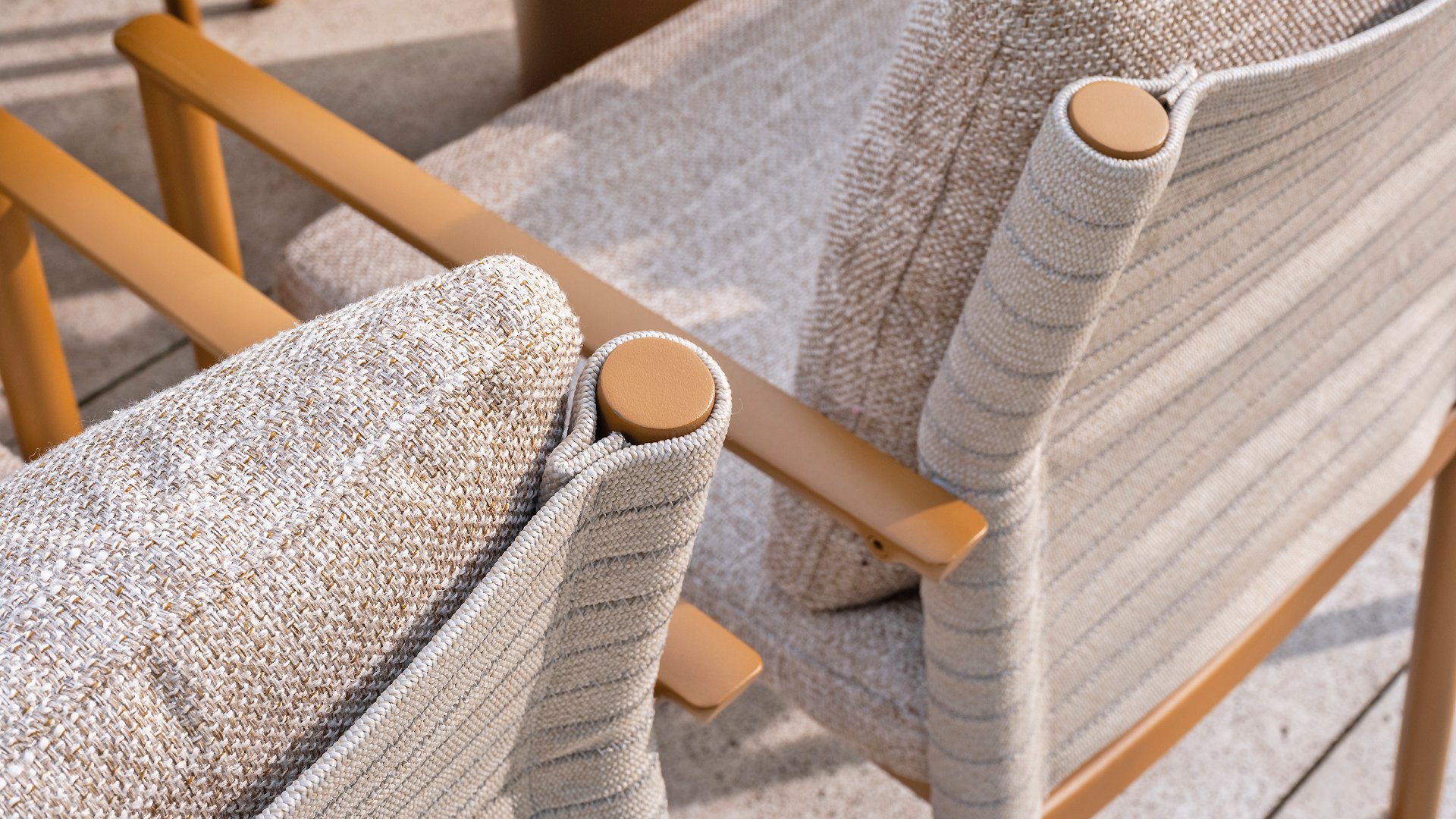 This beautiful material is perfect for outdoor use, because Taste Rope isn't just any shoelace. Taste uses very high-quality rope made from 100% SDP (Solution Dyed Polypropylene). This material is extremely strong and has very little stretch. Polypropylene is oil-based, making it virtually impermeable to dirt and contaminants, just like our cushions. Taste offers exclusive designs using hand-woven rope patterns and techniques.